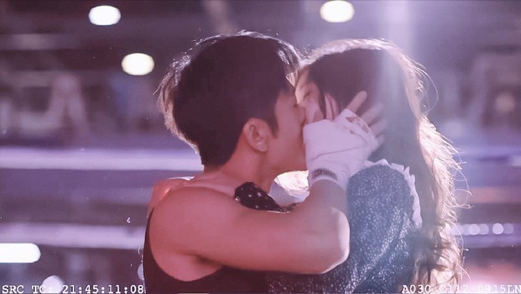 Một trong những cảnh quay khiến mọt phim mong đợi nhất của Yêu em từ dạ dày trong những ngày qua đó là cảnh khóa môi nóng bỏng ngay trên võ đài. Tuy nhiên, để có được cảnh quay hấp dẫn đó, hai diễn viên chính là Lâm Vũ Thân và Triệu Lộ Tư phải quay liên tục trong suốt 5 tiếng đồng hồ.