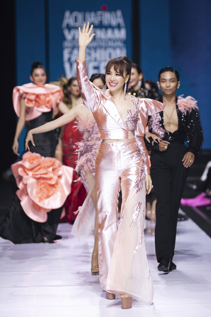 Quốc Trường - Diễm Hương mãi mê quấn quýt ra chào kết show trễ