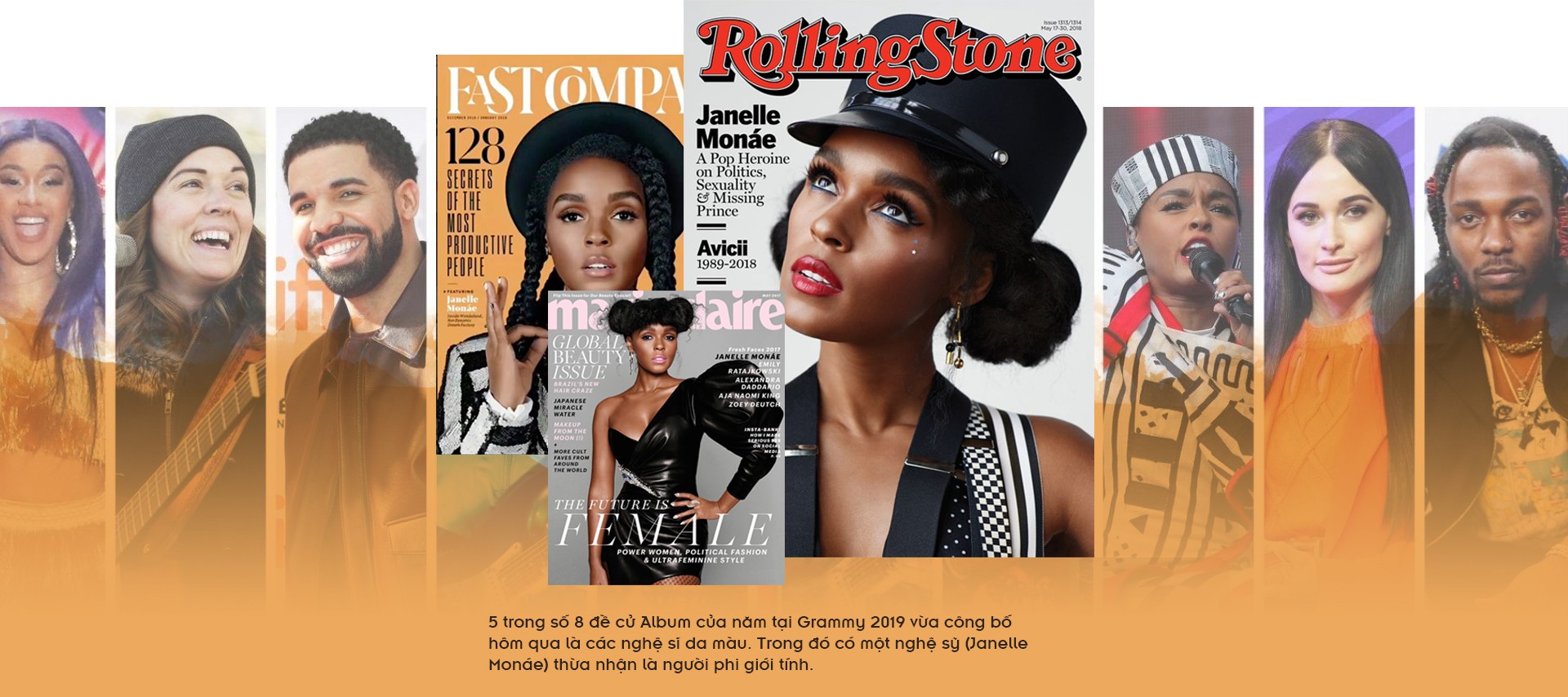 Người còn lại là Janelle Monáe hiện đang "thuận buồm xuôi gió" với album thứ ba Dirty Computer vừa ẵm một loạt đề cử Grammy.