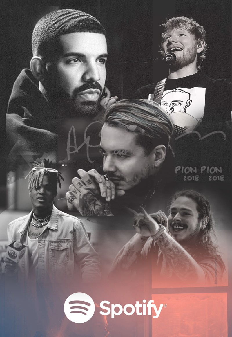 Top 5 nghệ sĩ có lượt nghe trực tuyến trên nền tảng Spotify khá thú vị: Drake, Post Malone, XXXTentacion, J Balvin và Ed Sheeran. Ed Sheeran thì đã là thương hiệu với những bản nhạc Pop bắt tai; J Balvin cũng không quá bất ngờ khi là đại diện Latin duy nhất; riêng ba cái tên còn lại đều... có vấn đề.