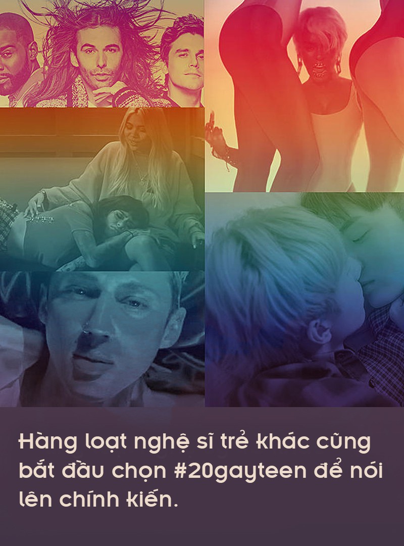 Sau Hayley Kiyoko, loạt nghệ sỹ trẻ khác cũng bắt đầu chọn #20gayteen để nói lên chính kiến, điển hình là Troye Sivan và MV có tên Bloom nơi anh mặc trang phục phi giới tính, trang điểm và làm tóc như một phụ nữ. Không chỉ chọn hình thức gián tiếp, trên sân khấu hiện nay, Troye Sivan cũng công khai giới tính.