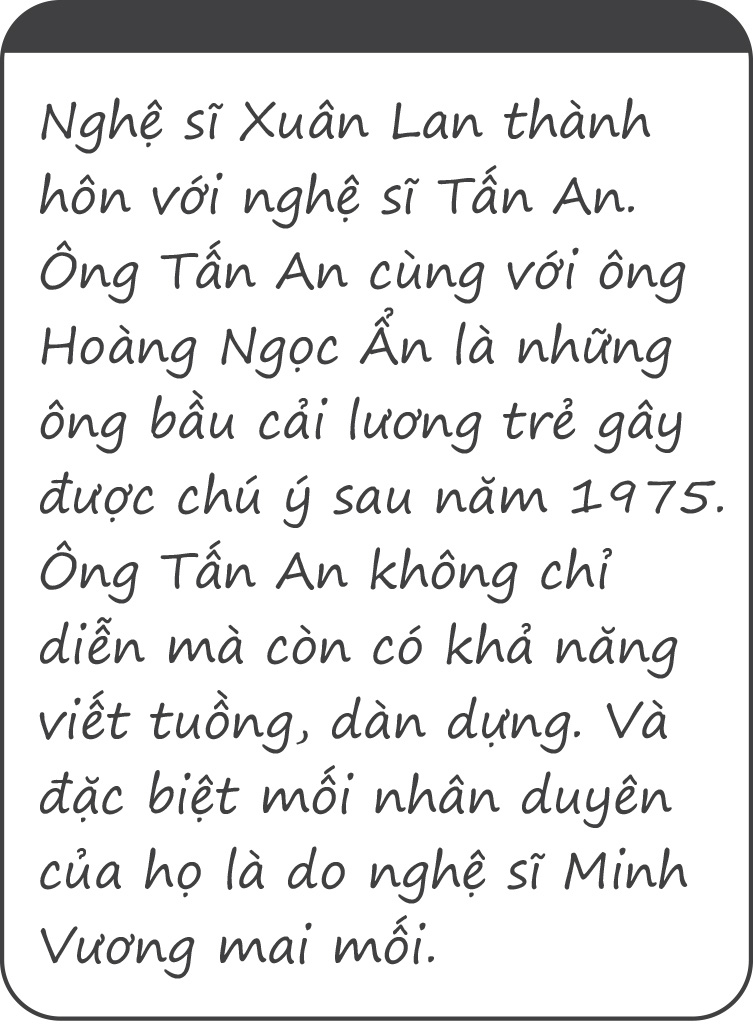Ở trong đoàn chị hay hỏi thăm, hỏi mấy đứa nhỏ coi hát được không, có vấn đề gì không. Ngay cả người soát vé, chị cũng quan tâm coi nhà người ta còn đủ gạo để ăn không", Xuân Lan xúc động kể về người nghệ sĩ mà bà kính trọng.