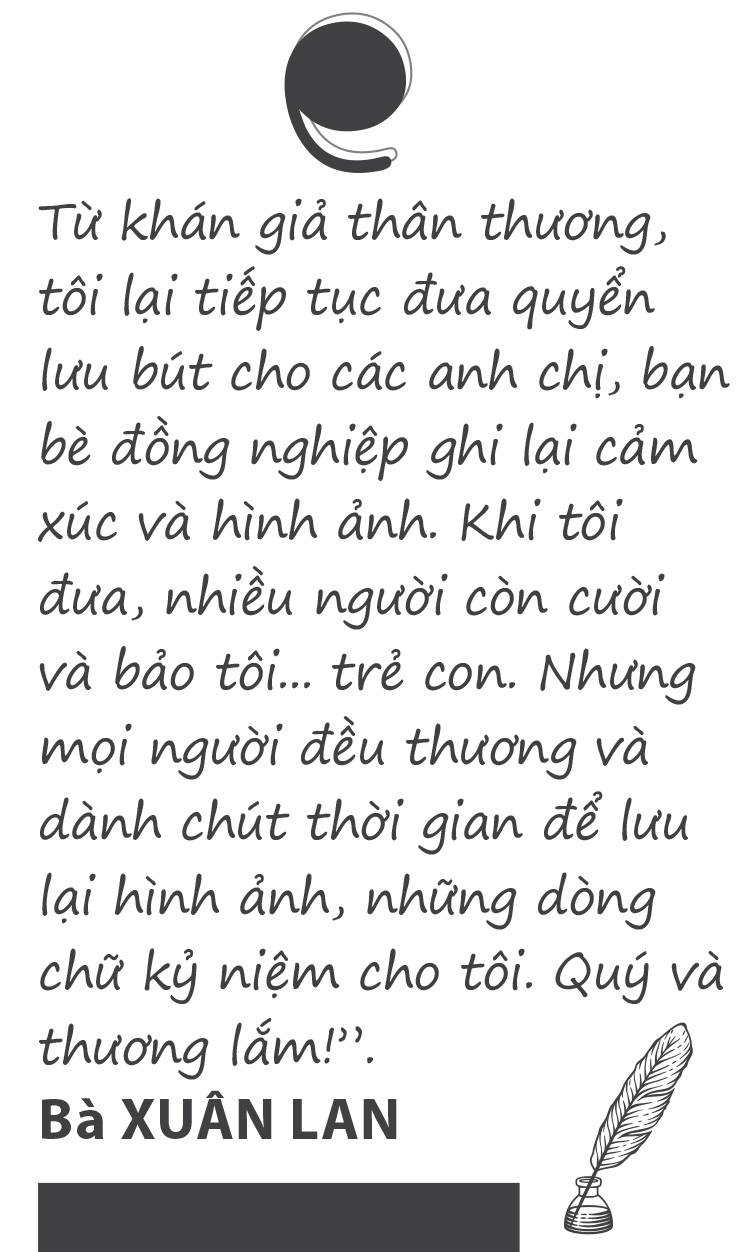 Quyển lưu bút đã ngừng trang cuối vào năm 1990. Nghệ sĩ Xuân Lan cũng rời nghiệp diễn khoảng năm 1995. Hơn 30 năm đã trôi qua nhưng bà luôn nâng niu quyển lưu bút như báu vật.