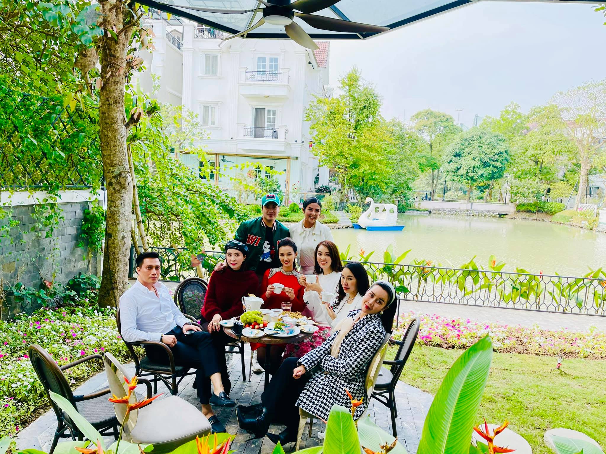 Khoảnh khắc Việt Anh và 'cá sấu chúa' Quỳnh Nga ngồi sát bên trong bức hình chụp chung với hội bạn khi tham gia buổi trà chiều cùng Lưu Hương Giang, Lã Thanh Huyền, Ngọc Hân... tại căn biệt thự sang chảnh mới tậu của lã Thanh Huyền càng làm khán giả tin rằng họ dành cho nhau tình cảm đặc biệt.