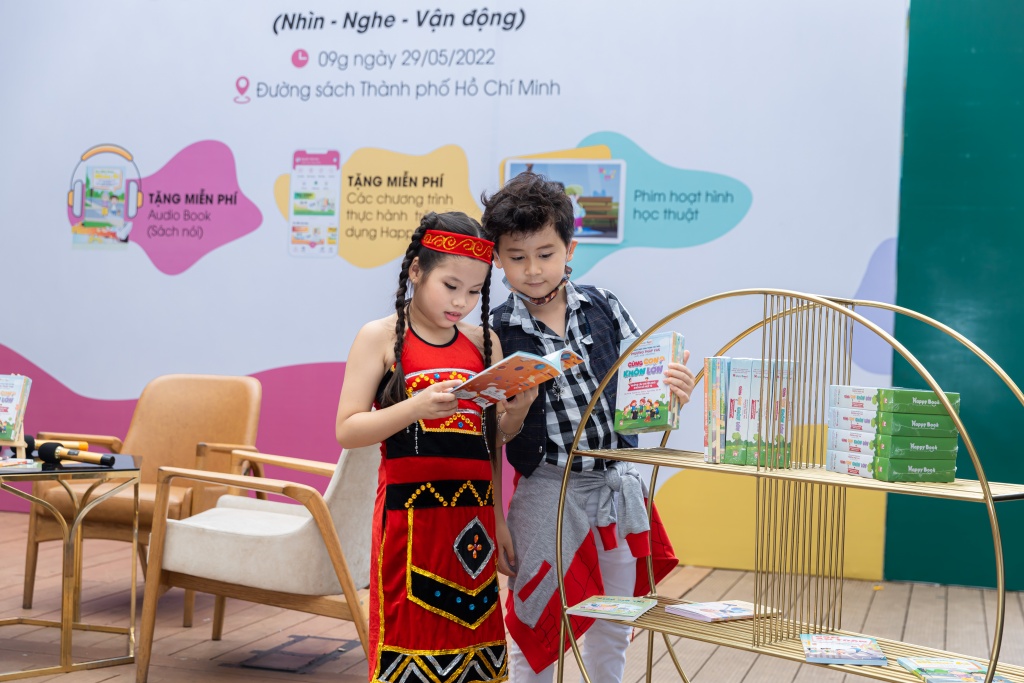 Sách giấy giúp trẻ tiếp xúc bài học lần 1 thông qua việc đọc - Visual(thị giác). Sách nói (Audio book) sẽ giúp trẻ ghi nhớ bài học lần 2 thông qua việc nghe - Auditory (thính giác). Chương trình thực hành trên ứng dụng Happy Book giúp trẻ ghi nhớ bài học lần 3 thông qua việc thực hành - Kinesthetic (vận động).