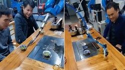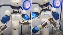 Chàng trai đóng giả người máy không giữ được thăng bằng, ngã sõng soài khi thấy cô gái thả tim cho mình.