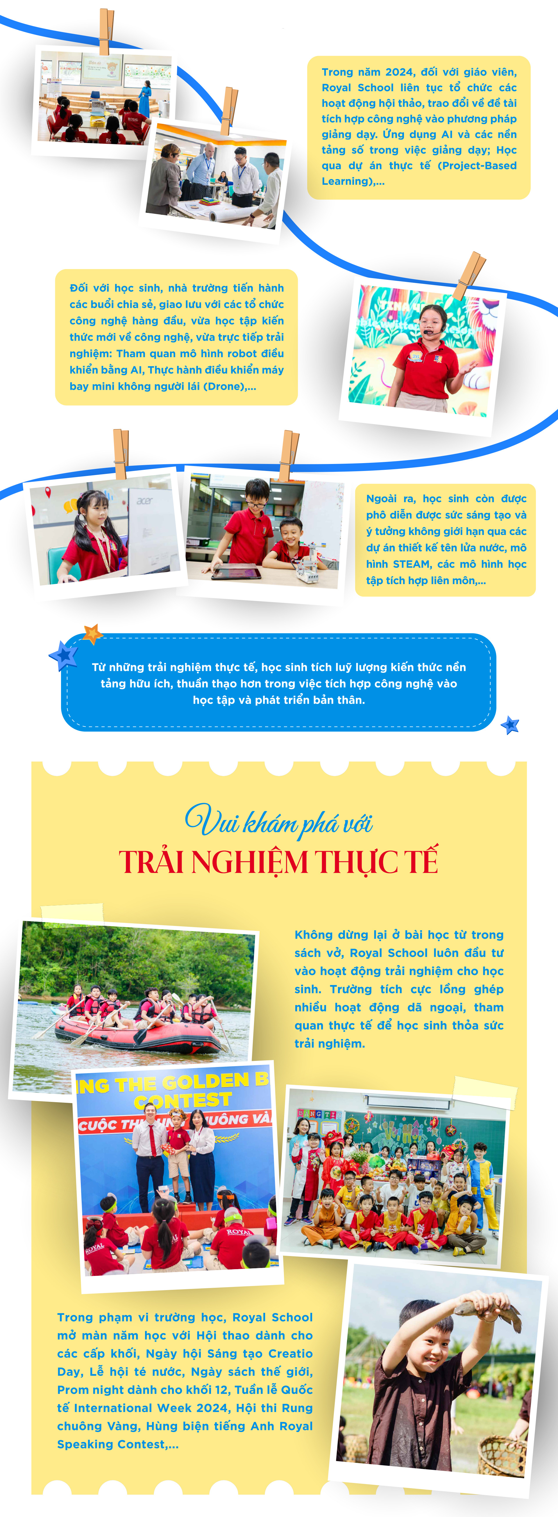 Năm 2024 - một năm “bùng nổ” của trí tuệ nhân tạo và công nghệ mới, không chỉ trên cả nước mà còn ở Royal School. Luôn chủ động đi đầu trong việc tích hợp công nghệ hiện đại vào dạy và học, Royal School mong muốn hướng tới khai mở tư duy, tạo cơ hội cho học sinh hội nhập tốt với xu hướng phát triển của thế giới.