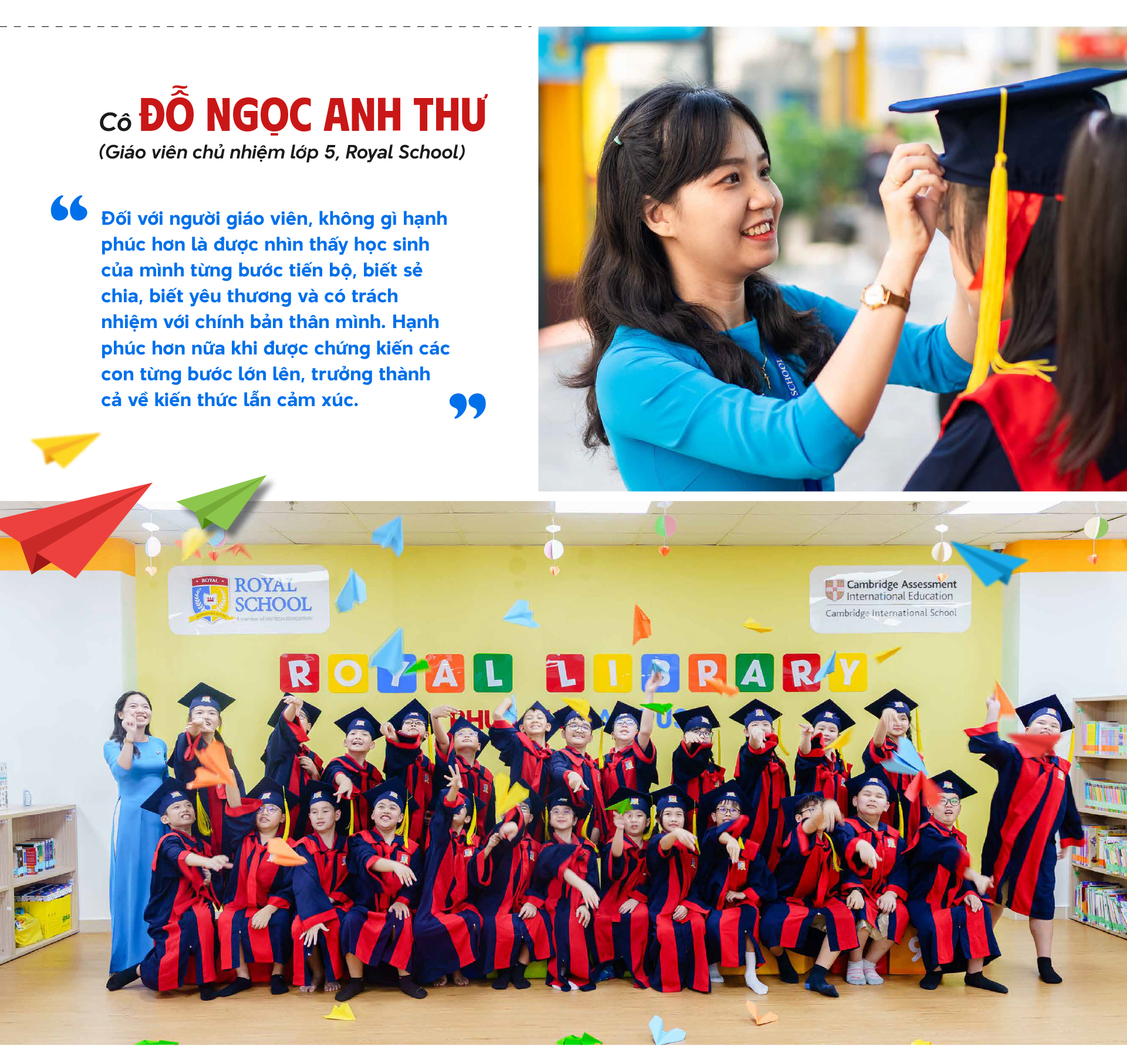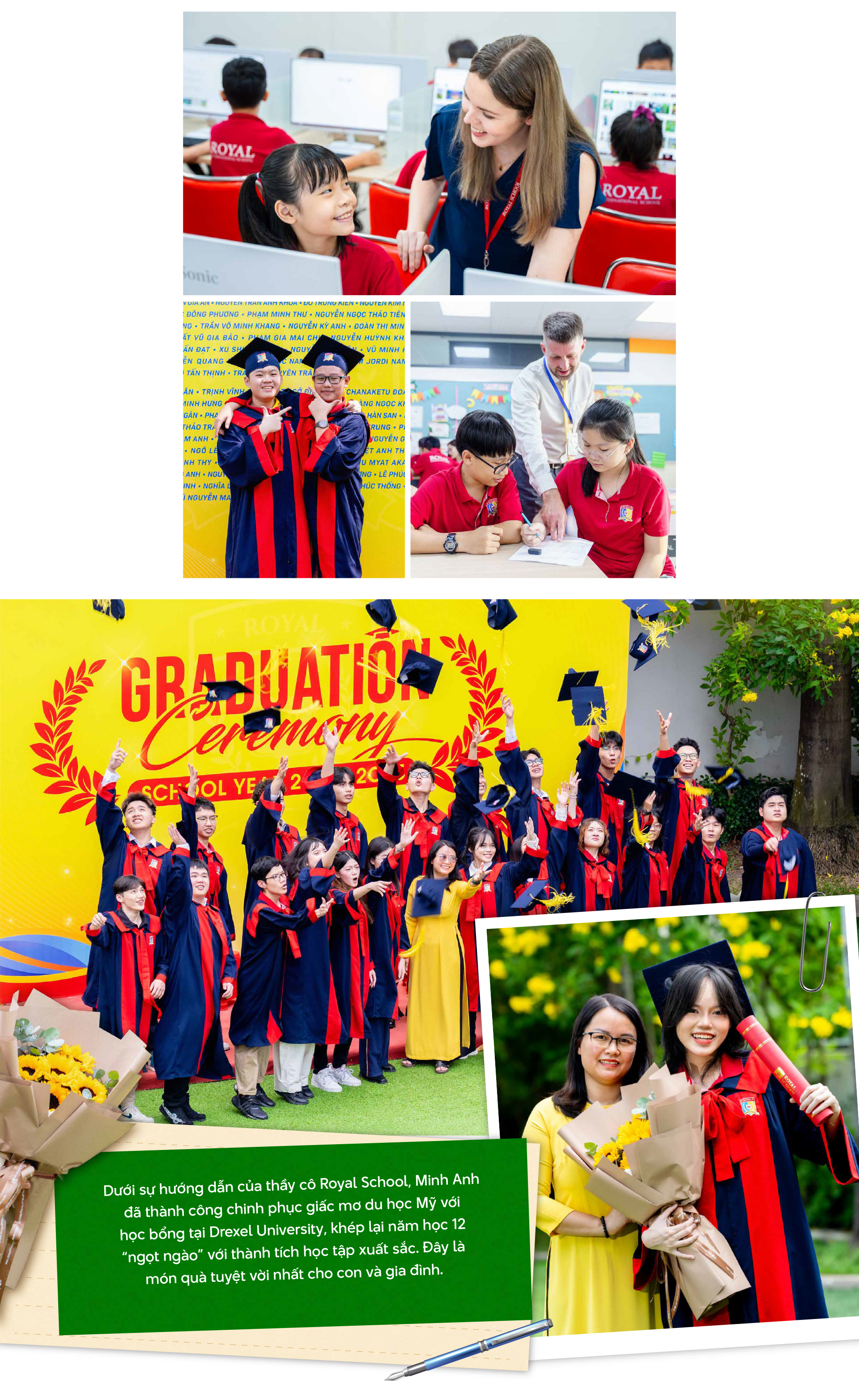 Mỗi lễ tốt nghiệp đến gần, thầy cô Royal School cũng giống như ba mẹ, xúc động và tự hào khi học sinh đã trưởng thành, mạnh mẽ hơn, tự tin đưa ra lựa chọn và tiến về phía trước.