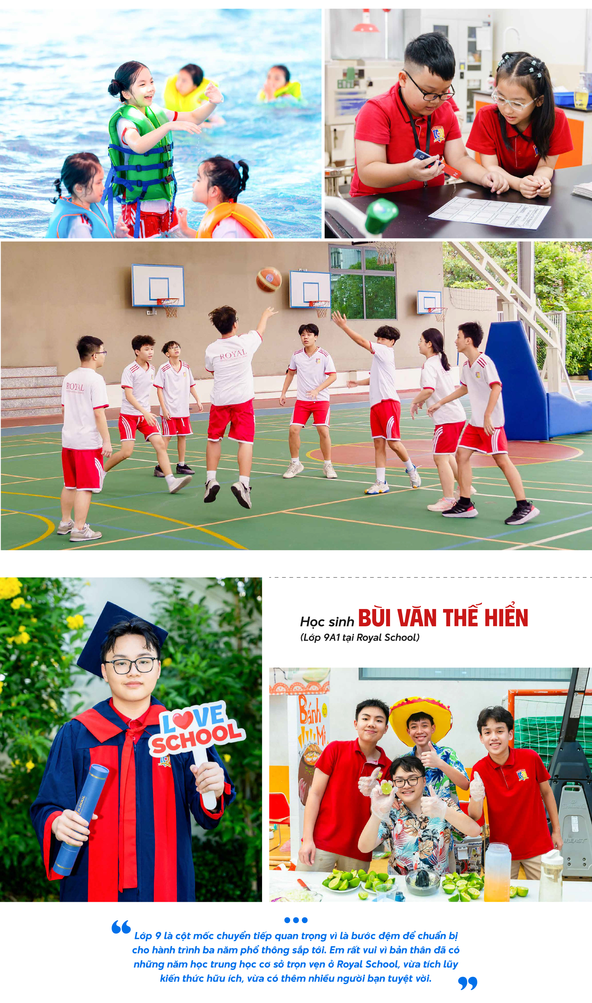 Bởi suốt thời gian học tập tại trường, bắt đầu từ ngày đầu tiên làm quen trường lớp, bạn bè, đến chuyến đi thực tế, sáng tạo nhiều dự án thú vị, cọ xát tại các sân chơi học thuật, phong trào, thể thao sôi nổi, học sinh ngày càng hoàn thiện hơn.