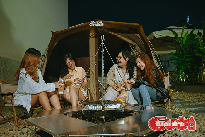 Bạn Dương Bích Loan (quận Bình Tân, TP. HCM) chia sẻ: "Mình biết quán qua Facebook, nên hết giãn cách là rủ nhóm bạn đến chơi. Theo mình, quán vào buổi trưa hơi nóng do nhiệt độ ngoài trời ở Sài Gòn cũng cao. Nếu đến buổi chiều tối sẽ mát mẻ hơn. Ở đây có đủ các loại đồ cắm trại, hệt như Đà Lạt thu nhỏ vậy. Nhờ đó mà cũng thỏa niềm đi check in trong khi cả nhóm chưa sẵn sàng lắm cho việc đi du lịch trở lại".