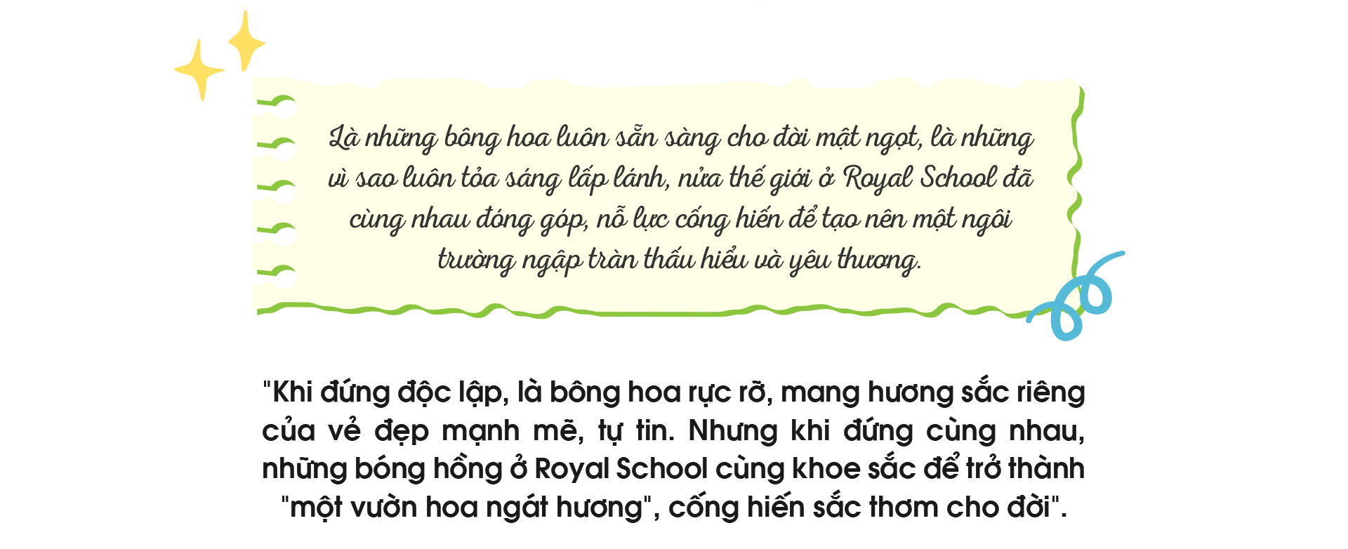 Không chỉ là môi trường nuôi dưỡng nên những cá nhân ưu tú, những sắc hồng độc lập và tự tin với thế mạnh riêng, Royal School còn là nơi khơi nguồn cho những tình bạn đẹp, những kết nối bền chặt.