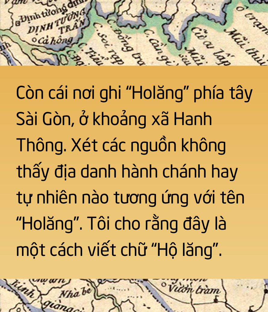 Địa danh "Holăng" như vậy chỉ khu vực Bi Nhu lăng, Lăng Cha Cả, hay địa bàn xã Hanh Thông (Hanh Thông xã, 1836). Vị trí này, bản đồ Sài Gòn 1885 ghi là "Tomb. de l’Enêque d’Adran" (Khu mộ Giám mục Adrand)