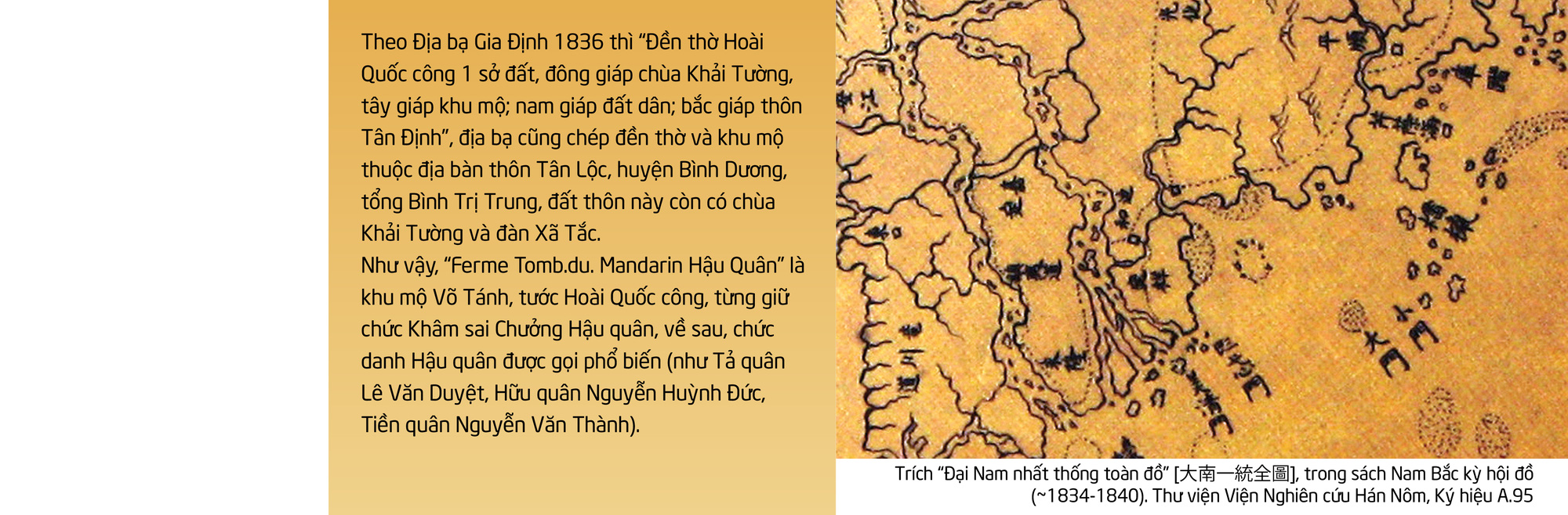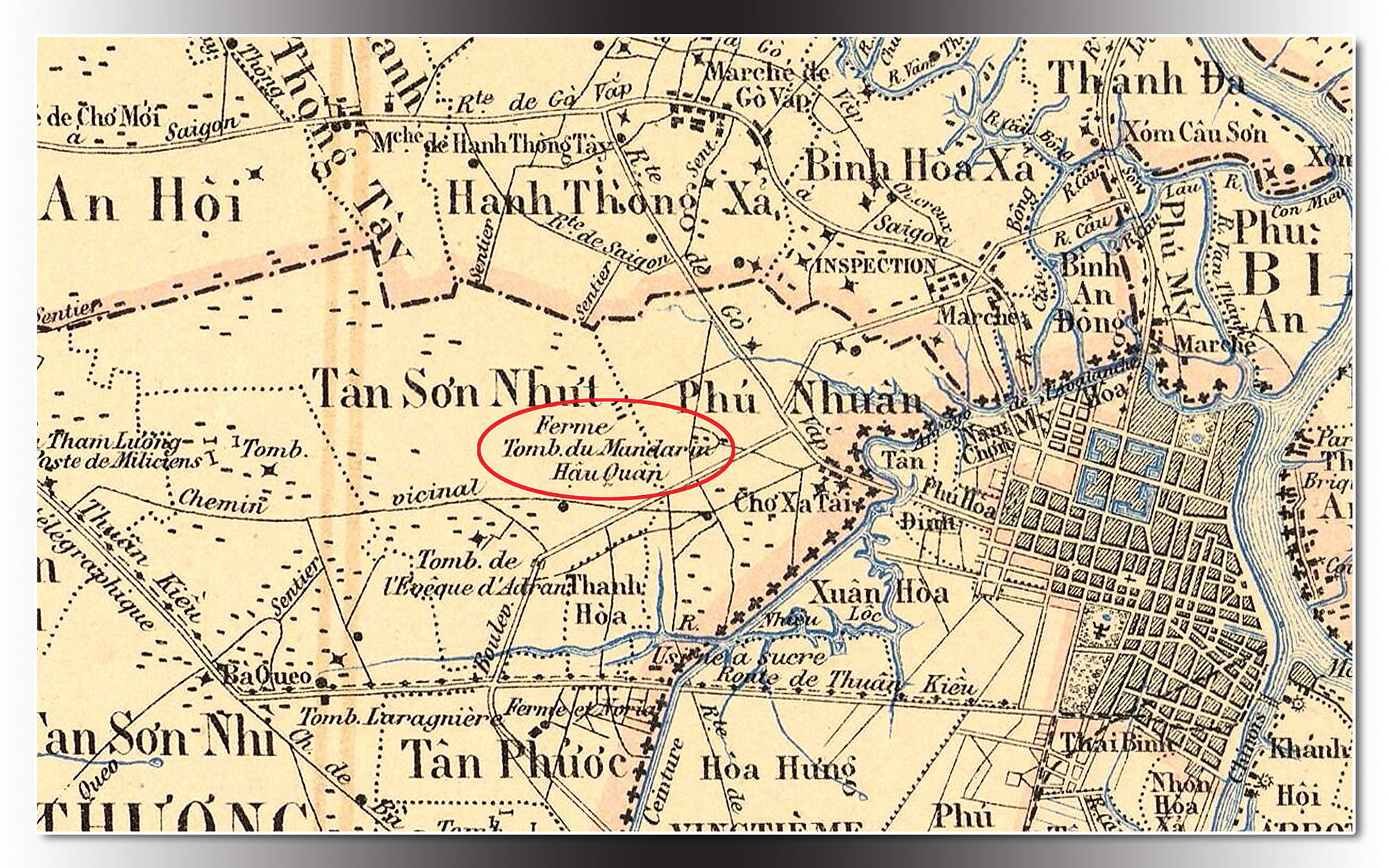 Bản đồ Sài Gòn 1885 (Plan Topographique de L’Arrondissement de SAIGON 1885) ghi "Tomb. de l’Enêque d’Adran" (Khu mộ Giám mục Adrand) thay cho "Holăng"; và một nơi gần đó ghi là "Ferme Tomb.du. Mandarin Hậu Quân" (Khu mộ quan Hậu Quân), do bản đồ không định vị bằng ký hiệu, nên có thể cho là khu mộ ở địa phận làng Phú Nhuận và cũng có thể ở địa phận làng Tân Sơn Nhứt.