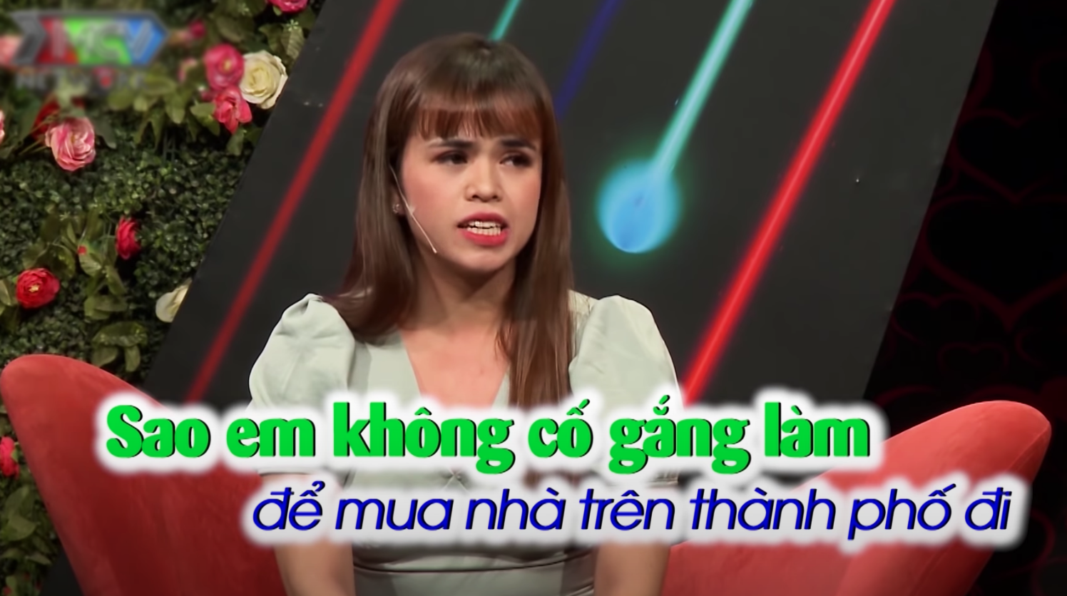 Ngọc Anh (26 tuổi) chia sẻ câu chuyện tình cảm khá éo le với người bạn trai cũ. (Ảnh chụp màn hình)Ngay lập tức, nam MC Quyền Linh nổi giận đùng đùng, đưa ra nhiều nhận định có phần gay gắt: "Tôi nghe cũng thấy buồn cho đàn ông. Đàn ông quen con gái mà kỳ lạ đi hỏi 'Có nhà chưa?'. Câu đó dùng cho phụ nữ thì còn hoạ may". Tiếp lời, bà mối - NSND Hồng Vân cũng đồng tình: "Phụ nữ hỏi câu đó thì Vân cũng thấy kỳ".