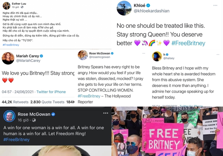 Không chỉ sao thế giới, nhiều người nổi tiếng Việt Nam cũng lên tiếng mạnh mẽ đòi tự do cho Britney. Hari Won viết trên trang cá nhân: “Gia đình là để cùng vượt qua khi con mình đau khổ.