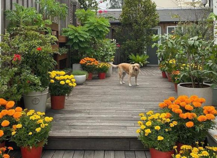 Hà Tăng vốn yêu thiên nhiên nên cô cũng chú trọng trang trí khu vườn nhỏ để đón xuân