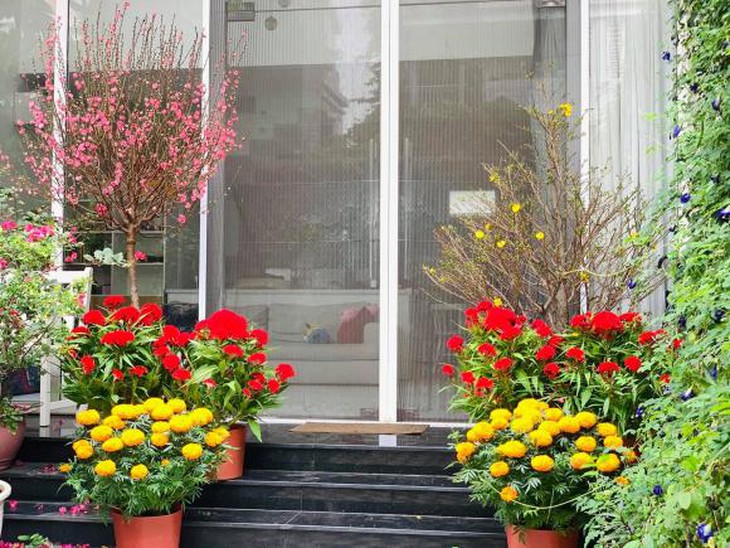 Biệt thự 40 tỷ được trang trí với nhiều hoa tươi, lộng lẫy tràn ngập sắc xuân.