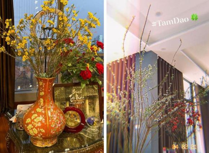Tóc Tiên sớm trang hoàng ngôi nhà của mình bằng các loại hoa đào, thanh liễu, hoa cúc...