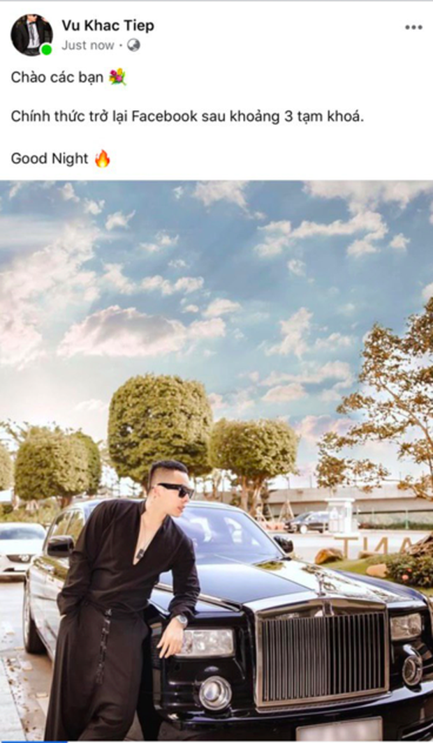 Đi kèm tấm ảnh là dòng trạng thái: "Chào các bạn, chính thức trở lại Facebook sau khoảng 3 tháng tạm khoá. Good night".