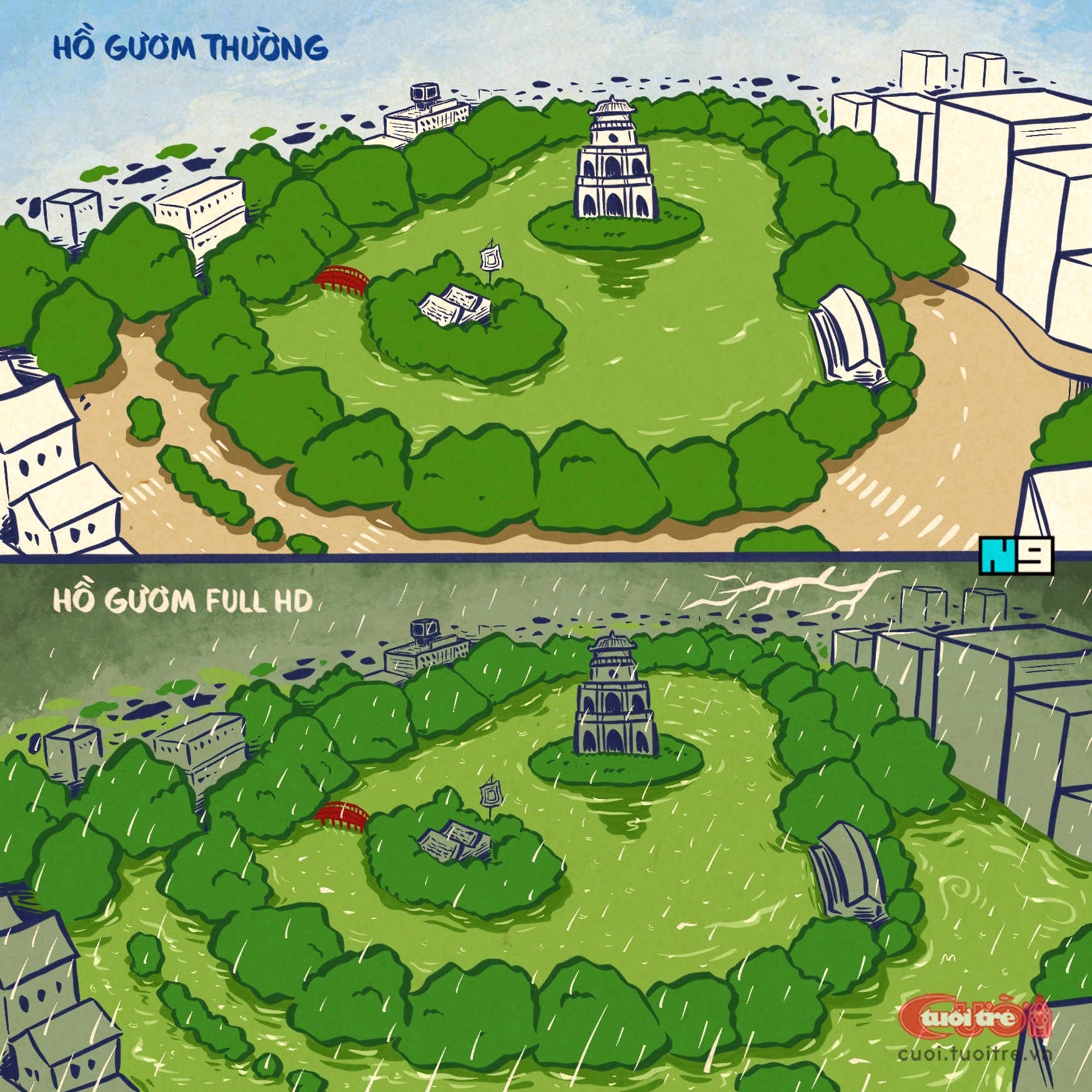 Sau cơn mưa nuốt chửng Hà Nội: Hồ Gươm ra mắt phiên bản mới cạnh tranh Hồ Tây