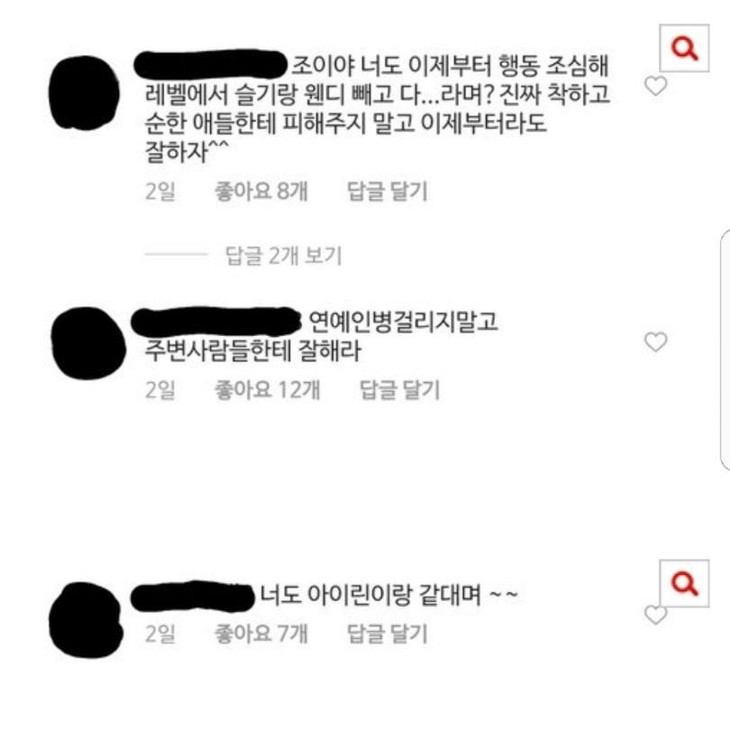 Những tưởng sự việc dừng lại ở đây vì đó đã là một “vết nhơ” khó xóa nhòa của Irene và đối với nhóm nhạc nữ Red Velvet. Thế nhưng một số cư dân mạng tiếp tục lôi Joy, thành viên khác của Red Velvet vào cuộc với những bình luận ác ý trên Instagram nữ ca sĩ này.
