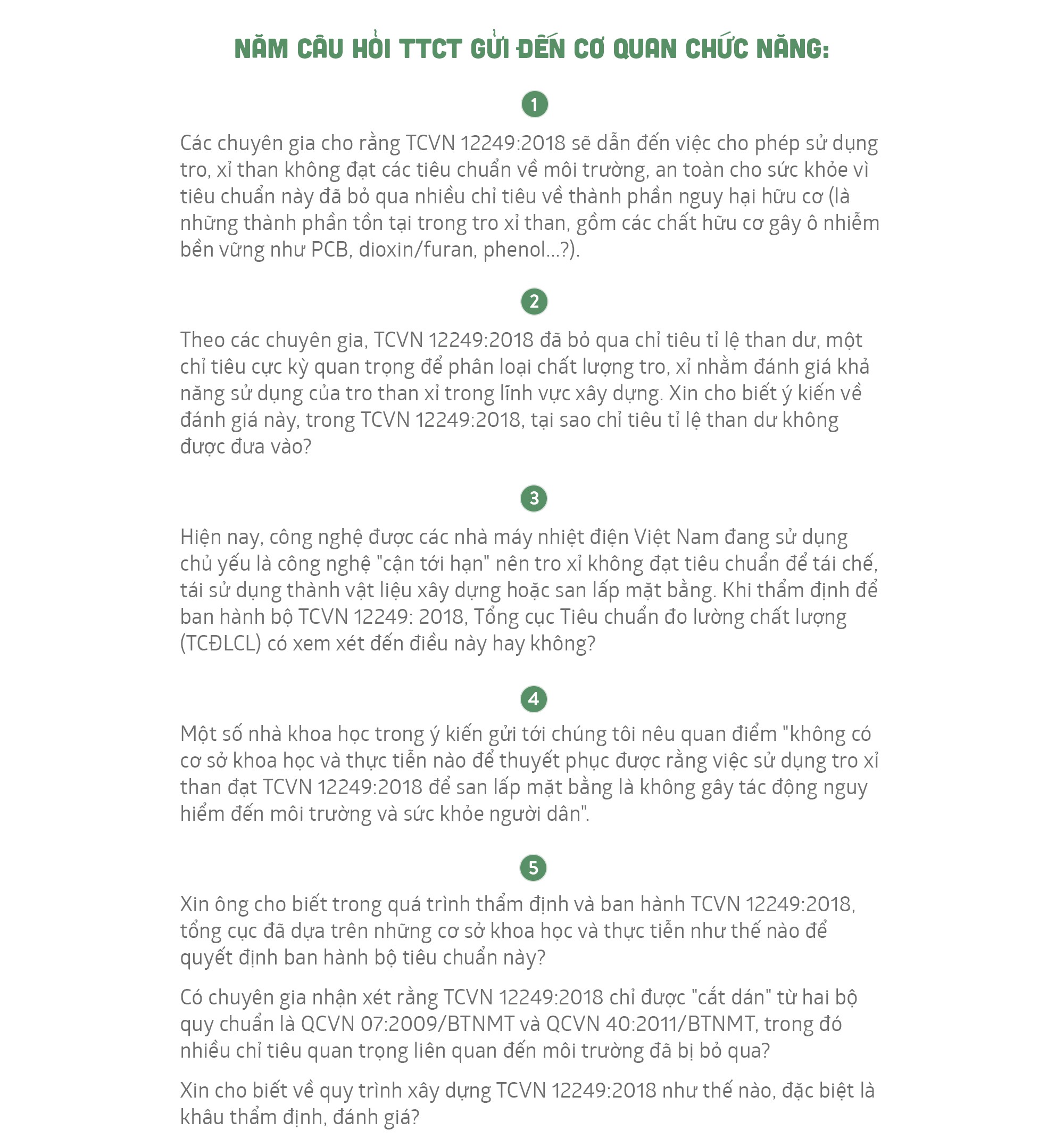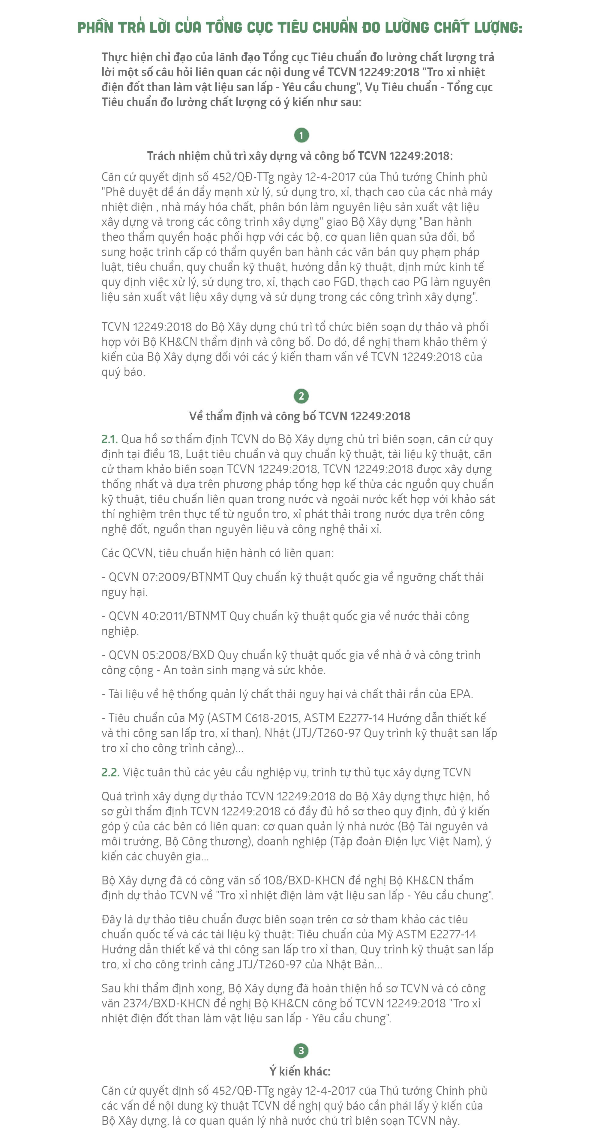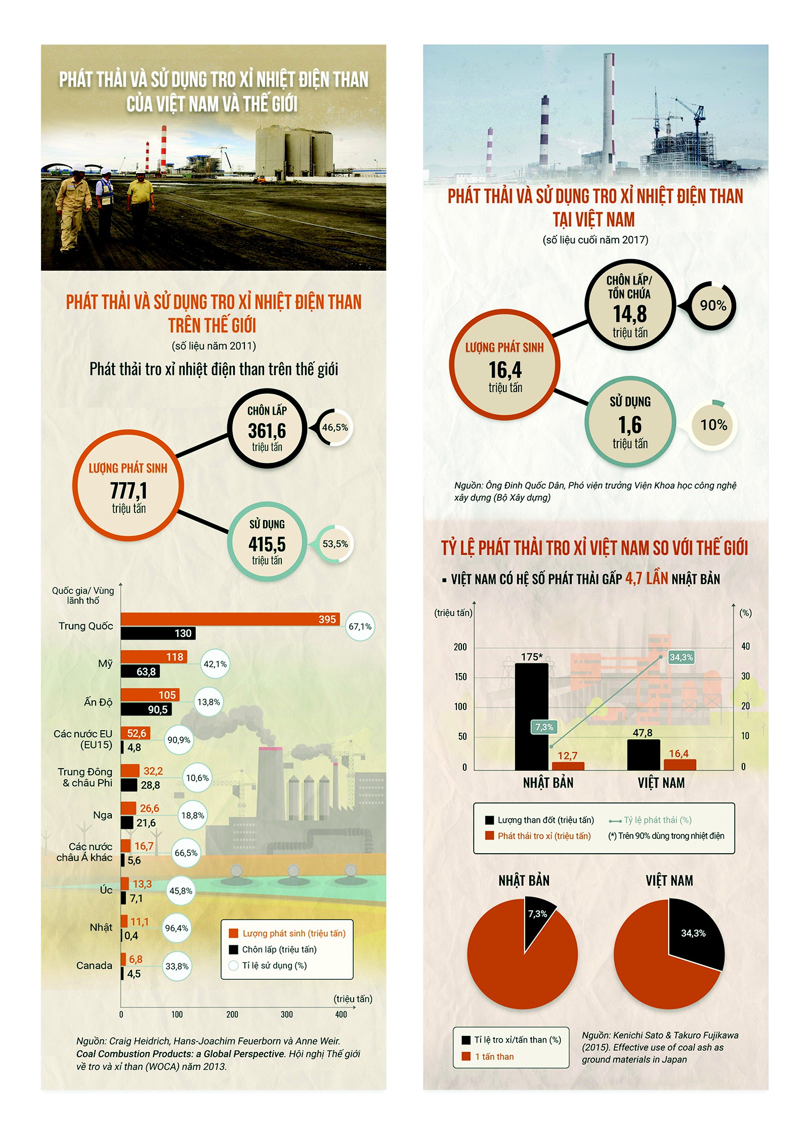 TTCT - Các nhà máy nhiệt điện than ở trung tâm nhiệt điện Vĩnh Tân (huyện Tuy Phong, Bình Thuận) và Duyên Hải (Trà Vinh) đang phát sinh lượng tro xỉ rất lớn. Nếu không có giải pháp xử lý lượng tro xỉ này thì 2-3 năm nữa sẽ không còn chỗ chứa. TTCT - Các nhà máy nhiệt điện than ở trung tâm nhiệt điện Vĩnh Tân (huyện Tuy Phong, Bình Thuận) và Duyên Hải (Trà Vinh) đang phát sinh lượng tro xỉ rất lớn. Những ngày này, đại công trường bãi chứa tro xỉ (tro bay và xỉ đáy lò) rộng khoảng 40ha của Công ty nhiệt điện Vĩnh Tân tấp nập công nhân, xe cơ giới, xe vận chuyển ra vào. Bãi cao gần 30m, chia thành nhiều ô với công suất thiết kế tích trữ khoảng 13 triệu tấn tro xỉ. Đây là nơi tích trữ tro xỉ của 3 nhà máy nhiệt điện (NMNĐ) Vĩnh Tân 2, Vĩnh Tân 4 và Vĩnh Tân 4 mở rộng. Hiện nay nhà máy Vĩnh Tân 4 mở rộng đang xây dựng nên lượng tro xỉ mới chỉ phát sinh từ hai nhà máy còn lại. Tại bãi chứa đã có nhiều ô tích trữ đầy tro xỉ, phần còn lại đang đổ vào san lấp, lu lèn. Công nhân thay phiên phun nước giữ ẩm, tránh bụi phát tán. Tại những ô đã chứa đầy tro xỉ xuất hiện nhiều điểm xói lở do ảnh hưởng của cơn mưa lớn kéo dài thời gian qua. Đứng trên triền đê bãi chứa này sẽ quan sát được hết các khu dân cư vùng ven và trung tâm nhiệt điện Vĩnh Tân cách đó khoảng 2km. Cạnh đó là bãi chứa tro xỉ của NMNĐ Vĩnh Tân 1 diện tích khoảng 60ha, hoạt động khoảng 2 tháng nay. Một ô chứa trong bãi tại trung tâm nhiệt điện Vĩnh Tân đã tích trữ đầy tro xỉ - Ảnh: ĐỨC TRONG Theo ông Lý Tư Trí - phó giám đốc Công ty nhiệt điện Vĩnh Tân, lượng tro xỉ tại các bãi chứa hiện nay gần 4,5 triệu tấn. Mỗi ngày, cả ba nhà máy tại trung tâm đang hoạt động phát sinh khoảng 10.000 tấn tro xỉ. Tuy nhiên đến nay chỉ có vài đơn vị tiêu thụ nên lượng tồn đọng đã đạt mức báo động. Tại Trà Vinh, NMNĐ Duyên Hải đi vào hoạt động từ đầu năm 2016. Tính đến nay lượng tro xỉ phát sinh gần 3,2 triệu tấn. Do chỉ mới tái sử dụng được một phần nhỏ (khoảng 684.000 tấn) nên lượng tro xỉ tồn tại bãi hiện hơn 2,5 triệu tấn. "Với tình hình này, bãi chứa tro xỉ chỉ đáp ứng được trong 2-3 năm nữa. Bộ Khoa học - công nghệ đã công bố tiêu chuẩn quốc gia về tro xỉ nhiệt điện đốt than làm vật liệu san lấp. Giờ chỉ còn chờ Bộ Xây dựng ra thông tư hướng dẫn nữa là giải quyết được vấn đề tro xỉ của NMNĐ Duyên Hải" - ông Âu Nguyễn Đình Thảo, phó giám đốc Công ty nhiệt điện Duyên Hải, cho biết. Hiện toàn bộ lượng tro xỉ chưa tiêu thụ được lưu trữ tại bãi xỉ Duyên Hải 1 có diện tích 31ha và bãi xỉ chung của Duyên Hải 3 và 3 mở rộng có diện tích 19ha. Như vậy, các bãi xỉ vẫn còn chứa được gần 3,5 triệu tấn. Với lượng tro xỉ phát sinh khoảng 5.250 tấn/ngày thì có thể chứa được 2-3 năm nữa. Khi xây dựng các NMNĐ ở Vĩnh Tân, chủ đầu tư có tính đến bài toán tiêu thụ tro xỉ không? Ông Lý Tư Trí thừa nhận chưa tính tới vấn đề này và xem việc xây dựng bãi chứa tro xỉ như là phương án dự phòng để tích trữ. Ông thấy tro xỉ ở các NMNĐ than phía Bắc tiêu thụ nhanh, không tồn đọng nên nghĩ rằng tại Vĩnh Tân cũng như vậy. Đến khi vào vận hành, Công ty nhiệt điện Vĩnh Tân mới ký hợp đồng với một công ty tiêu thụ 50% lượng tro bay (khoảng 2.250 tấn) phát sinh hằng ngày tại NMNĐ Vĩnh Tân 2 (4.500 tấn) để sản xuất gạch không nung. UBND Bình Thuận đã đồng ý chủ trương này từ năm 2017 nhưng đến nay chưa triển khai được. Đối với số tro xỉ tồn đọng còn lại tại các nhà máy, Tập đoàn Điện lực VN (EVN) cùng Tổng công ty Phát điện 3 (EVN GENCO 3) và Công ty nhiệt điện Vĩnh Tân đã triển khai nhiều giải pháp. Theo đó, các đơn vị này đang phát hành hồ sơ mời chào dịch vụ tiêu thụ, xử lý, lựa chọn các đối tác năng lực dùng vào việc phối trộn san lấp, sản xuất ximăng, đúc khối bêtông chắn sóng (TETRAPOD)... Lãnh đạo tỉnh Bình Thuận cũng gợi ý các đơn vị nghiên cứu sử dụng tro xỉ này vào việc san lấp cho những dự án cao tốc sắp tới đi qua địa phương. Vừa qua, Bộ Khoa học - công nghệ đã công bố tiêu chuẩn quốc gia (TCVN 12249:2018) tro xỉ nhiệt điện đốt than làm vật liệu san lấp. Trên cơ sở tiêu chuẩn này, Công ty nhiệt điện Vĩnh Tân đã gửi mẫu tro bay, xỉ đáy lò, nước chiết từ hỗn hợp tro xỉ, cũng như hoạt độ phóng xạ và chỉ số hoạt độ phóng xạ an toàn của hai NMNĐ Vĩnh Tân 2 và Vĩnh Tân 4 đến các đơn vị có chức năng phân tích. Kết quả phân tích cả 2 NMNĐ đều đạt yêu cầu. Tuy nhiên đó chỉ mới là dự kiến, lượng tro xỉ đang phát sinh hiện nay tại trung tâm nhiệt điện Vĩnh Tân vẫn dùng biện pháp thủ công là chôn lấp tại các bãi chứa. Về nguyên nhân chưa giải quyết triệt để đầu ra, ông Trí cho rằng do Bộ Xây dựng chưa ban hành thông tư hướng dẫn quy chuẩn phối trộn tro xỉ cho từng mục đích sử d