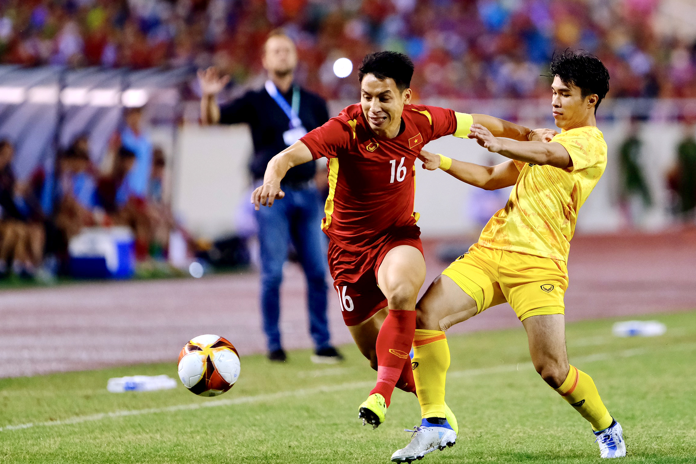 Và bàn thắng phút 83 của Nhâm Mạnh Dũng, cú đánh đầu đưa bóng vào góc chữ A khung thành, xứng đáng là khoảnh khắc vàng trong cơn bão vàng của SEA Games.