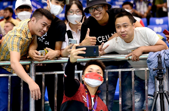 Bên trong nhà thi đấu Bắc Giang hôm diễn ra nội dung chung kết đồng đội nữ môn cầu lông, Apriani Rahayu nói rằng cô choáng ngợp và hạnh phúc với sự cổ vũ cuồng nhiệt của các CĐV Việt Nam. "Thật bất ngờ khi nghe các CĐV bản địa hô vang: Indonesia, Indonesia. Bầu không khí tuyệt vời, tôi rất hạnh phúc khi được các bạn cổ vũ", tay vợt 24 tuổi người Indonesia nói.