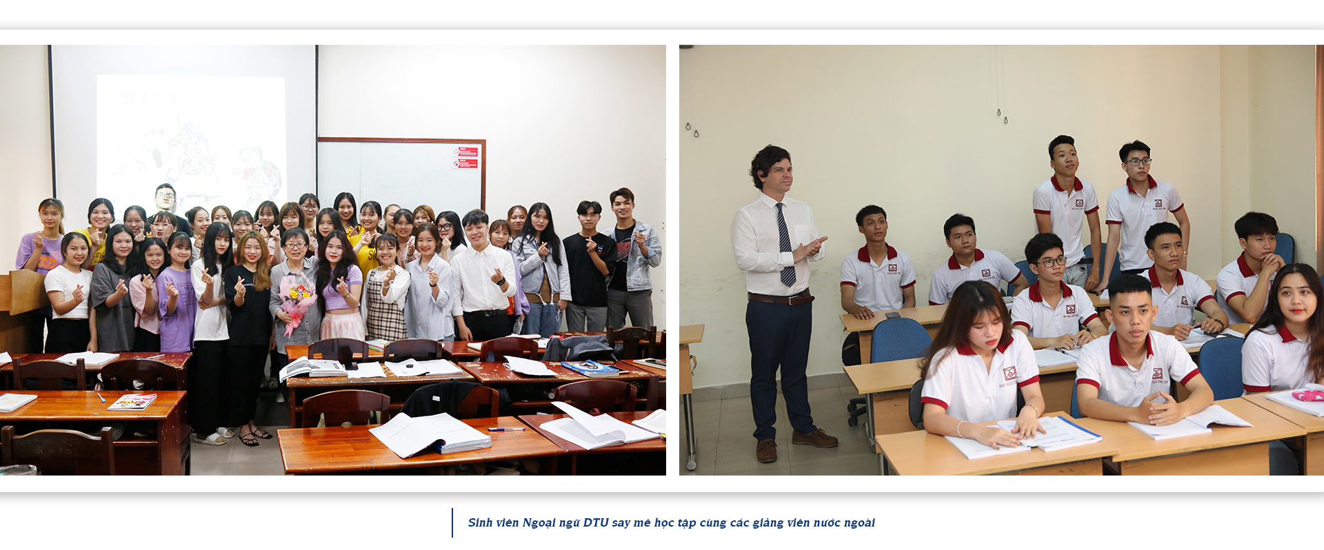 Học Ngoại ngữ thì tất nhiên phải học với giảng viên là "người bản địa" rồi. Bởi chỉ có "người bản địa" mới phát âm chuẩn nhất ngôn ngữ của chính quốc và thấu hiếu sâu sắc ý nghĩa của ngôn từ "mẹ đẻ" mà truyền đạt cho sinh viên. Bởi vậy mà ở ĐH Duy Tân, quốc tế hóa giảng viên giảng dạy ngoại ngữ đang là mục tiêu hướng đến để ngày càng có thật nhiều giảng viên nước ngoài đến trường giảng dạy, tạo ra một môi trường văn hóa đa quốc gia, giúp sinh viên nhanh chóng nâng cao trình độ các ngôn ngữ quốc tế, với nhiều chuyên ngành đào tạo như: