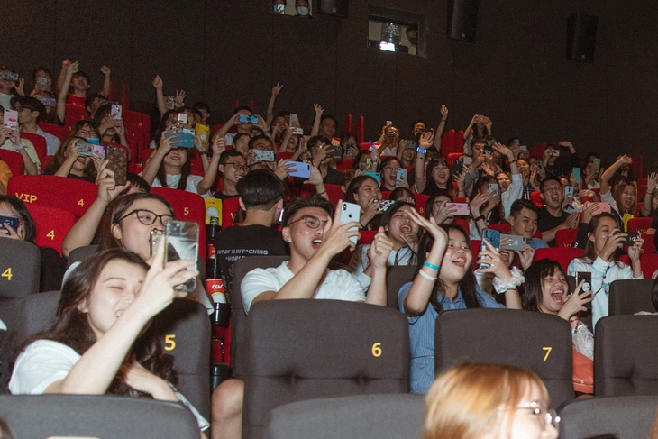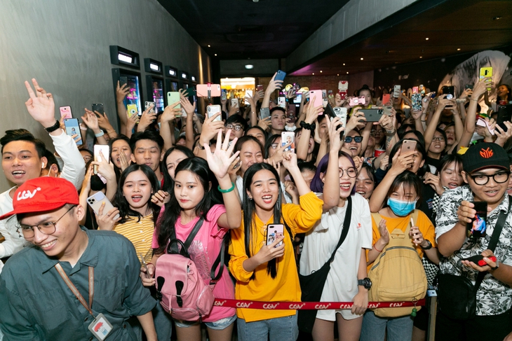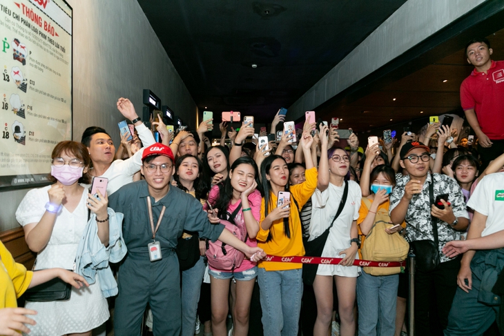 Tại cụm rạp CGV Landmark 81 tiếp đó, màn xuất hiện bất ngờ của Sơn Tùng M-TP cũng khiến người hâm mộ hò reo. Rất nhiều bạn học sinh liên tục hú hét, khi mình là vị khách may mắn được ngồi trong suất chiếu có thần tượng xuất hiện. Một bạn chia sẻ: “Tụi em đặt vé từ hôm qua, rủ nguyên cả nhóm tan học về đi xem suất chiếu này. Gặp được anh Tùng ở khoảng cách gần như vậy bất ngờ và đặc biệt lắm!".