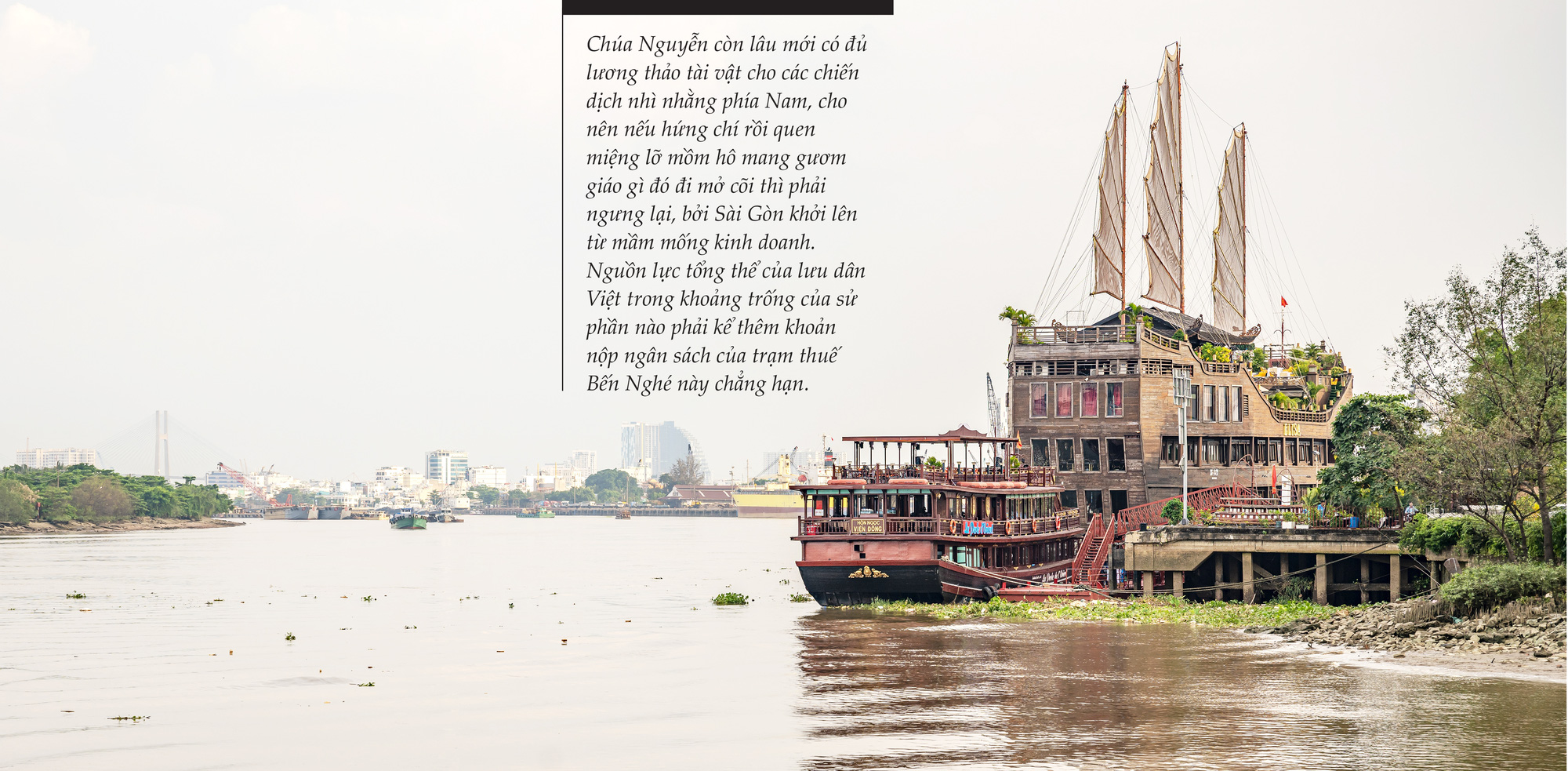 Trạm thuế Bến Nghé bên dòng sông quanh co này từ năm 1623 đến khi lập phủ Gia Định (1698) thâu thuế của ai, nhân sự ở trạm liệu có thể đủ mạnh để kêu ngoắt ghe tàu của những người khác ngôn ngữ ghé vô nộp mãi giang lộ?