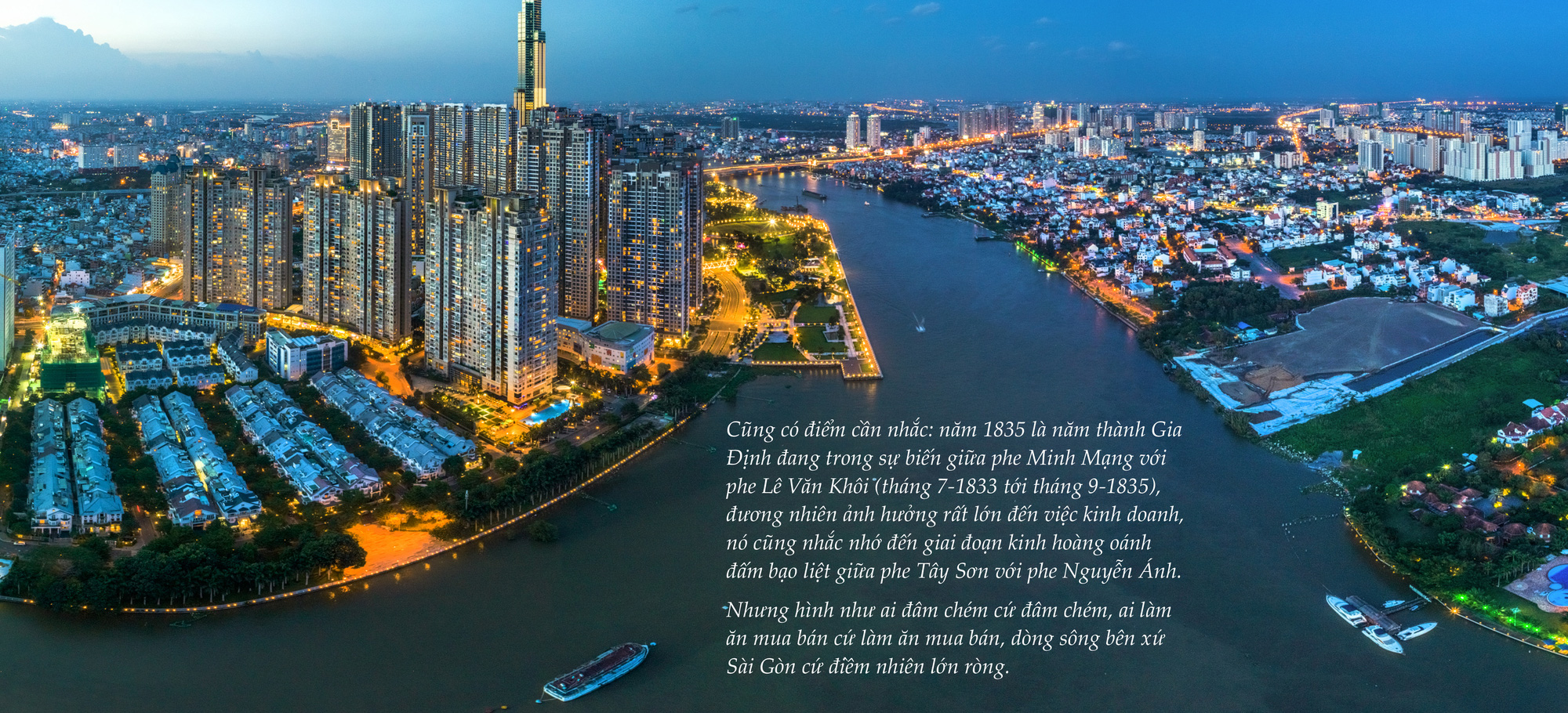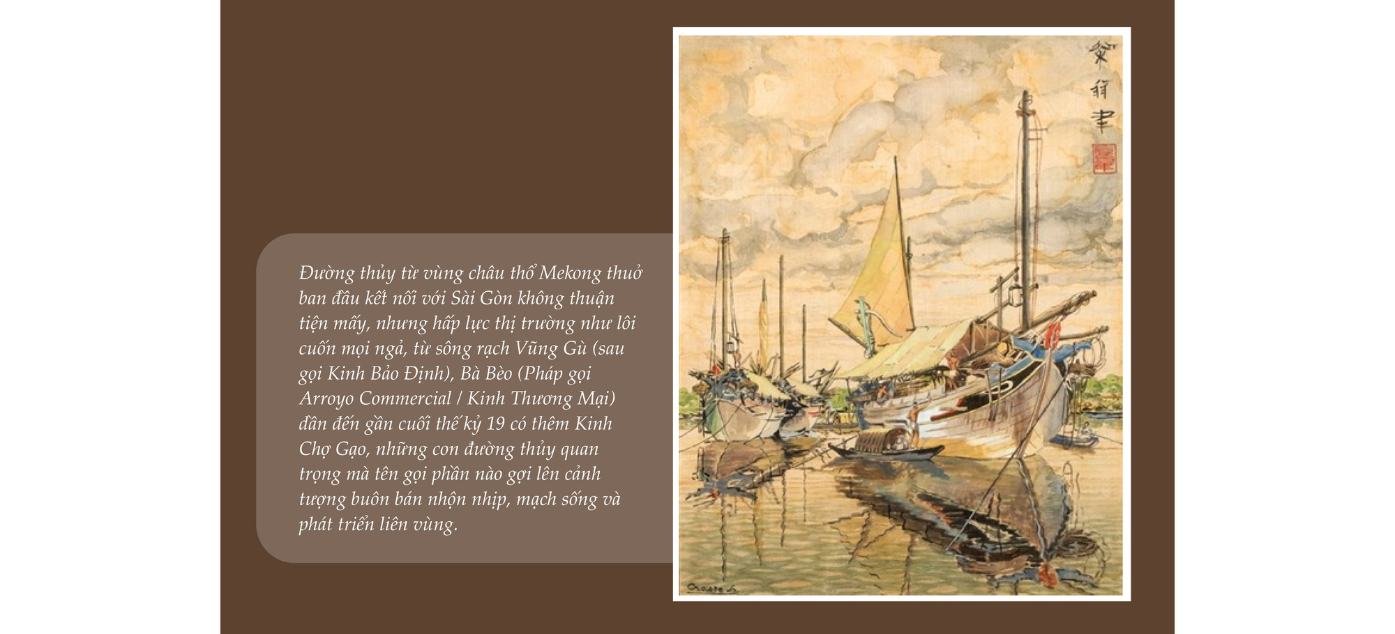 Một mạch sông dài với điểm nhấn là Sài Gòn thị tứ. Mà nói đến chuyện kinh thương, Sài Gòn mạnh nhờ sự kết nối đông tây, và đông tây sung túc cũng nhờ điểm tụ Sài Gòn, đó là chuyện qua lại giữa những dòng sông.