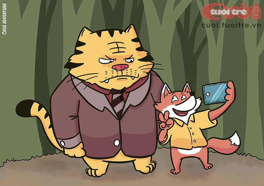 Cáo còn tìm cách chụp hình seo-phì với ông Hùm. Có được hình ảnh chụp chung với ông trùm cuối, Cáo đem về dán đầy nhà đi đâu cũng khoe rằng mình rất thân với ông Hùm. Bọn ngơ ngác như con Nai, hay hiền lành như con Sóc đều xóc óc với con Cáo mà không làm gì được.