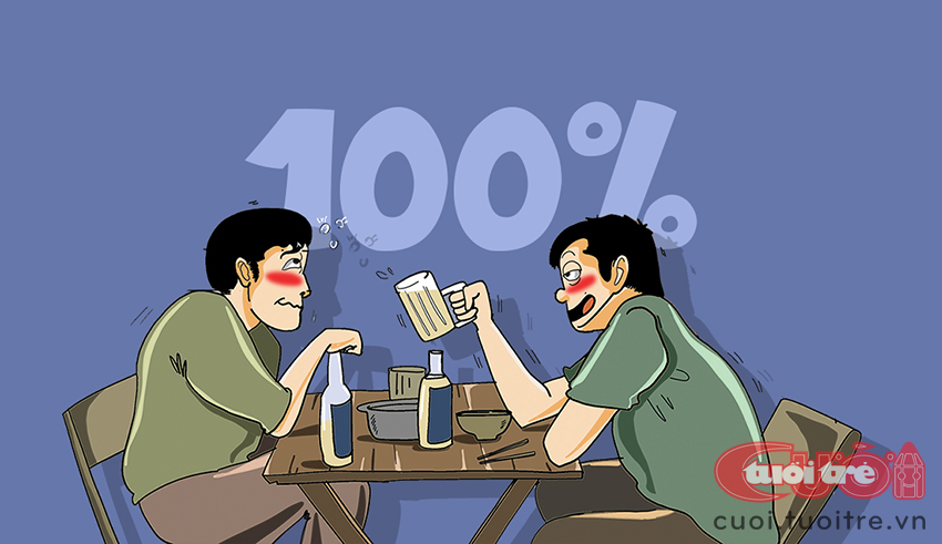 100% đàn ông đều nói đã đưa hết 100% lương cho vợ. Nhưng sự thật là 100% đàn ông không đưa tiền hết cho vợ. 100% đàn ông đều có quỹ đen. Vậy nên mỗi lần họ hô to "Dzô 100%", tinh thần mấy ông càng phấn chấn.
