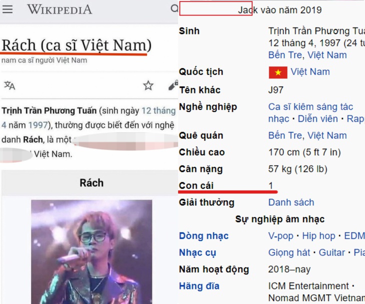 Trong khi đó, nam MC Trấn Thành cũng “chịu chung cảnh ngộ”, khi tiểu sử bị chỉnh sửa đến hai lần chỉ trong một khoảng thời gian ngắn. Điều đáng nói, khi những ồn ào bủa vây vẫn chưa được phân định trắng - đen, thì nam MC đã phải nhận những lời lẽ xấu xí, thô tục đến cả người đọc cũng phải cau mày khó chịu.