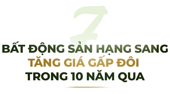 Tại các khu vực trung tâm Hà Nội và TP.HCM, giá bất động sản hạng sang và cao cấp có mức tăng trung bình 7 - 10%/năm trong 10 năm qua. Chẳng hạn, giá căn hộ cao cấp tại quận 1 TP.HCM đã tăng từ 150 triệu/m² năm 2015 lên hơn 300 triệu/m² (2023). Tại quận Hoàn Kiếm (Hà Nội) giá nhà phố tăng từ 300 triệu/m² năm 2015 lên 700 triệu/m² năm 2023.