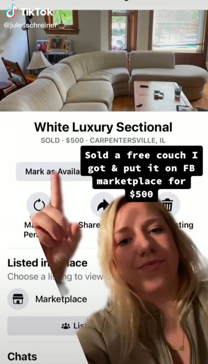 Chị Jules Schreiner thừa nhận ban đầu, khi bán được giá 350 USD, chị đã nghĩ mình đá bán được sofa với giá hời - Ảnh: TIKTOK