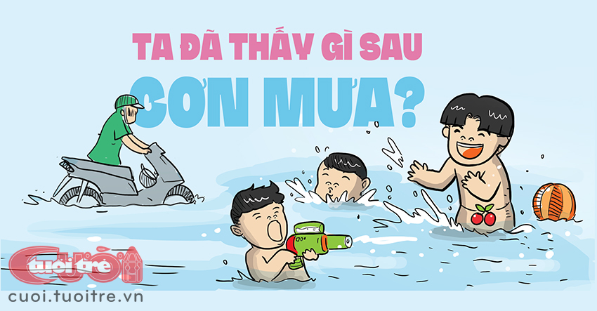 Đám trẻ con thành phố nào giờ có biết tắm sông. Biển nước mênh mông, khu phố trở thành dòng sông quê đen thui đặc quánh. Chúng ùa ra đường nhảy xuống "sông", bơi như có hề có cuộc...vmưa rơi.