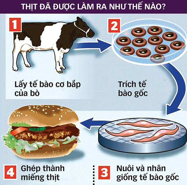 TTCT - Công nghệ sinh học sẽ làm thay đổi toàn bộ cuộc sống của con người. Mọi thứ bắt đầu từ chính bàn ăn của chúng ta. Ngày 12-6 vừa qua là “Ngày thế giới không thịt”, ngày nâng cao nhận thức về tác dụng của việc giảm ăn thịt. Thế giới sẽ ra sao nếu không còn thịt? Theo The Future of Meat, dự án sắp đặt nghệ thuật của một nhóm nghệ sĩ châu Âu, đó là tương lai mà “chúng ta chỉ ăn côn trùng, dế được nuôi tại gia, và các loại thịt gia súc đều được tạo ra từ phòng thí nghiệm”. The Future of Meat vạch ra năm kịch bản về tiêu thụ thịt vào năm 2050, gồm ba dự báo về những thứ sẽ thay thế thịt (heo, bò, gà, thủy hải sản) trong tương lai: thịt côn trùng, thịt tạo ra từ phòng thí nghiệm, “thịt chay” từ nguồn thực vật. Hai kịch bản còn lại là xu hướng chăn nuôi ít để đảm bảo chất lượng và thân thiện với môi trường, dù như thế giá thịt sẽ đắt hơn. Cuối cùng là kịch bản “không làm gì cả”, mở ra viễn cảnh đen tối khi “thiên nhiên sẽ bị tàn phá nặng nề và Trái đất chỉ còn là nơi trồng đậu tương làm thức ăn cho gia súc lấy thịt”. Không phải chuyện của “đời con cháu” Vì sao phải cực khổ làm thịt nhân tạo trong khi việc nuôi và giết mổ gia súc gia cầm đã phổ biến từ xưa đến nay? Theo báo cáo mới công bố ngày 21-6, dân số thế giới hiện tại là 7,6 tỉ và sẽ tăng lên 9,8 tỉ người vào năm 2050. Với số “miệng ăn” khổng lồ đó, sản lượng thịt toàn cầu cần phải tăng gấp đôi mới đủ nhu cầu, theo Tổ chức Nông nghiệp và lương thực của Liên Hiệp Quốc (FAO). Điều này buộc ngành sản xuất thức ăn gia súc phải tăng sản lượng, kéo theo hệ quả là nhiều tài nguyên hữu hạn như đất đai và nguồn nước sẽ tiếp tục bị chiếm dụng. Theo FAO, việc sản xuất thức ăn gia súc chiếm dụng đến 26% diện tích đất không phủ băng trên Trái đất, và 13 tỉ hecta rừng bị phá hủy mỗi năm để lấy đất trồng trọt phục vụ cho ngành chăn nuôi. Ngành chăn nuôi cũng góp phần làm trầm trọng hơn tác hại của biến đổi khí hậu, vì hoạt động nông nghiệp hiện chiếm gần 1/10 lượng khí thải nhà kính toàn cầu. Chất thải của gia súc cũng sẽ là nguồn ô nhiễm chính của đất trồng và nguồn nước. Tất cả những tác động tiêu cực này sẽ giảm thiểu rất nhiều nếu nhân loại “nói không với thịt” và chuyển sang các loại hình thực phẩm thay thế. Shaked Regev, thành viên Modern Agriculture Foundation - công ty chuyên sản xuất “thịt nhân tạo”, cho rằng sản xuất thịt từ thực vật là mệnh lệnh cần phải làm ngay, “không phải cho con cháu đời sau, mà là cho thế hệ hiện tại”. Thịt nhân tạo đã bán trên thị trường Thịt mà không phải thịt Thịt được chế tạo trong phòng thí nghiệm thay vì giết mổ động vật, hay còn gọi là thịt nhân tạo hay “thịt giả”, nghe có vẻ giống món chay giả mặn, nhưng để tạo ra nó đòi hỏi hàm lượng khoa học công nghệ cực cao. Một trong những phương pháp làm thịt trong phòng thí nghiệm là trích xuất tế bào gốc từ bò, “nuôi” cho phát triển thành từng sợi thịt và ghép lại thành miếng thịt hoàn chỉnh. Phương pháp này hiện chưa thể sản xuất hàng loạt vì phải làm thủ công và chi phí cao. Một phương pháp khác được nhiều nhà nghiên cứu lựa chọn là làm thịt từ nguyên liệu thực vật. Hai công ty Mỹ, Impossible Foods và Beyond Meat, cùng đeo đuổi mục tiêu hòa trộn các loại ngũ cốc, đậu nành, dầu dừa, protein từ khoai tây và các nguyên liệu có nguồn thực vật khác để tạo ra miếng thịt bò xay dùng làm bánh hamburger. “Thịt bò giả” phải đáp ứng đủ các tiêu chí: có vân và thớ thịt như thật, thậm chí phải kêu xèo xèo khi nướng và tiết ra dịch đỏ khi cắn vào. Impossible Foods giải bài toán trên bằng cách dùng nguồn thực vật để thay thế sắc tố heme, chất làm nên màu đỏ và vị của thịt bò, trong khi Beyond Meat dùng protein có trong hạt đậu hòa lan để tạo nên các sợi gân cho thịt bò nhân tạo. Không chạy đua làm “thịt bò giả”, New Wave Foods, công ty khởi nghiệp ở San Francisco (Mỹ), chọn nghiên cứu “hải sản nhân tạo” từ nguồn thực vật. Theo tờ SF Chronicle ngày 3-5, tôm “trong phòng thí nghiệm” của New Wave Foods được làm từ tảo biển và protein từ đậu hòa lan, được cho là có mùi và vị như tôm thật. Giống như cách làm đồ chay giả mặn, New Wave Foods cho hỗn hợp “thịt giả” vào khuôn cong cong như con tôm thật và tạo màu đỏ từ lycopene, sắc tố có trong cà chua. Nếu thành công và chinh phục được người dùng đại chúng, “thịt nhân tạo” sẽ giảm thiểu được tác động môi trường của ngành chăn nuôi gia súc truyền thống. Theo chuyên trang về ngành thực phẩm Food Dive ngày 22-5, bánh hamburger dùng thịt bò của Impossible Foods chỉ tốn 1/20 lượng đất, 1/4 lượng nước và thải ra lượng khí nhà kính chỉ bằng 1/8 so với một chiếc bánh thông thường. Thịt nhân tạo cũng tốt cho sức khỏe