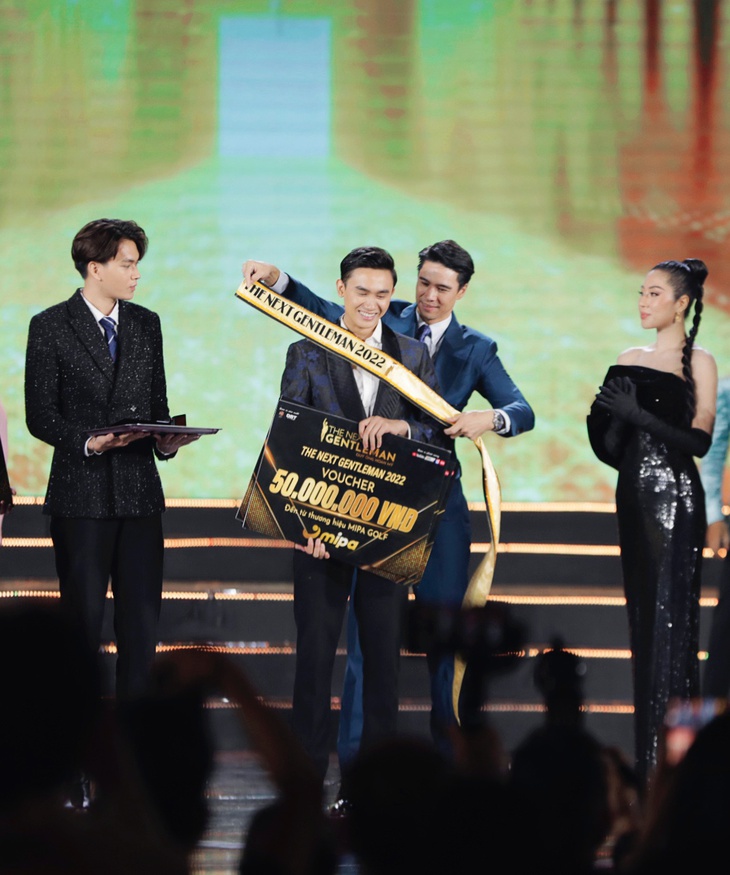 Trên sân khấu ngập ánh sáng, tiếng nhạc và sự hò reo cổ vũ của khán giản, nam tài tử đến từ đất nước chùa Vàng lúng túng đeo dải băng cho Phạm Tấn Kiên nhầm thành cách các hoa hậu được nhận sash.