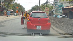 Thấy container lấn sang làn ngược chiều, cụ bà đi xe đạp hoảng hốt, bẻ ngoặt tay lái và ngã ra giữa đường, khiến tài xế một phen hú hồn.
