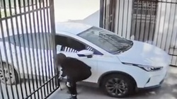 Sau khi đẩy lò nướng tránh va vào xe của mình, tài xế hốt hoảng "ba chân bốn cẳng" rượt theo chiếc ôtô đang trôi tự do khiến nhiều người xem phì cười.