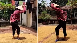 Bị nhắc nhở về việc để cục bê tông chặn giữa đường để phơi lúa, người phụ nữ liền lý sự cùn khiến tài xế ô tô bức xúc.