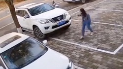 Sau một hồi loay hoay mãi không lùi được xe vào chuồng, nam tài xế quyết định xuống xe dùng sức mạnh cơ bắp kéo xế hộp vào đúng vị trí.