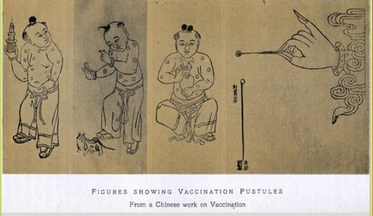 TTCT - Công cụ tạo ra sự miễn dịch với vi trùng ở người làm thay đổi hoàn toàn thế giới xuất phát từ một con virus ở bò và cuộc tiêm chủng hàng loạt đầu tiên trong lịch sử dưới thời Khang Hy ở đế quốc Mãn Thanh. Thuật ngữ “vaccine”, và chích vaccine (“vaccination”) xuất phát từ tên một loại virus đậu mùa (“pox virus”), chính xác là virus đậu mùa ở bò, có tên khoa học là vaccinia. Bác sĩ Edward Jenner thực hiện cuộc chủng ngừa đậu mùa đầu tiên của ông với James Phipps, 14-5-1796, sơn dầu trên vải toan. Tranh của Ernest Board. -Ảnh: The New York Times Từ nguyênTừ điển Oxford English Dictionary ghi nhận người Pháp đã nghĩ ra từ “vaccine” vào năm 1800 và “vaccination” vào năm 1803. Dù các thứ tiếng phương Tây đôi khi có biến thể một chút, như tiếng Bồ Đào Nha là “vacina” còn Tây Ban Nha là “vacuna”, tất cả đều xuất phát từ gốc Latin là “vacca”, nghĩa là “con bò”. Một nguồn khác, tạp chí chuyên ngành British Medical Journal cho biết từ vaccine được sử dụng lần đầu như một tính từ, bởi bác sĩ người Anh Edward Jenner vào năm 1799.Khi nói về bất kỳ loại vaccine nào, nhất thiết phải bắt đầu cuộc thảo luận với công trình của Jenner (1749 - 1823). Vào cuối thế kỷ 18, Jenner quan sát được một điều đáng kinh ngạc: những người phụ nữ làm nghề vắt sữa bò bị nhiễm virus đậu mùa ở bò, với triệu chứng là nổi ban ở tay và cánh tay, miễn nhiễm với dịch đậu mùa đang hoành hành trong giáo khu của ông. (Nhiều loài động vật có virus đậu mùa của riêng chúng). Jenner được cho là lần đầu nghe chuyện này vào cuối những năm 1770, khi một người vắt sữa bò khoe với ông rằng do cô đã nhiễm đậu mùa từ bò nên cô “sẽ không bao giờ bị đậu mùa [ở người] và sẽ không phải đeo một khuôn mặt xấu xí”. Jenner làm nên lịch sử vào năm 1796 khi ông kê cho một bệnh nhân của mình liều thuốc sau này sẽ được gọi là “liều vaccine” đầu tiên trong lịch sử - vaccine làm từ virus đậu mùa ở bò. Kỹ thuật của thời đó, tất nhiên, hoàn toàn “hữu cơ” và “thuận tự nhiên”: vị bác sĩ lấy mủ ở vết thương trên tay người vắt sữa bị nhiễm bệnh từ bò và bôi nó lên vết cắt ông tạo ra trên cánh tay một cậu bé 8 tuổi tên là James Phipps.6 tuần sau, Jenner cho cậu bé tiếp xúc với người bị bệnh đậu mùa - lúc bấy giờ là một căn bệnh cực kỳ đáng sợ, với tỉ lệ tử vong 30% và còn cao hơn ở trẻ em. Nhưng sau 20 lần tiếp xúc liên tiếp, Phipps vẫn khỏe mạnh. Sau này cậu lớn lên, kết hôn, sinh hai con và sống tới khi dự đám tang của Jenner vào năm 1823 (Phipps qua đời ở tuổi 65).Từ 1796 tới 1798, Jenner đã thu thập được 23 trường hợp người bị nhiễm virus đậu mùa ở bò (tất nhiên lúc đó chưa có khái niệm virus, nên đúng ra là những người từng bị bệnh đó), rồi xuất bản một bài viết kết luận rằng “đậu mùa ở bò bảo vệ con người khỏi nhiễm đậu mùa”. Đó là kết luận sẽ khai phá cho ngành y sinh miễn dịch và trị liệu vaccine làm thay đổi hoàn toàn thế giới của con người.Thật ra, trước khi Jenner phát triển phương pháp của ông, nhiều bác sĩ đã biết tạo sự miễn dịch cho bệnh nhân với bệnh đậu mùa bằng phương pháp chủng đậu (“variolation”), tức gây nhiễm có kiểm soát bằng vảy hoặc mủ người nhiễm đậu mùa cho người khỏe mạnh (tiếp xúc hoặc hít vật nhiễm). Biện pháp mới của Jenner đột phá ở chỗ nó không chỉ hiệu quả mà còn gây ít tác dụng phụ và an toàn hơn rất nhiều.Cuộc đại chủng ngừa ở Trung HoaHơn 100 năm trước Jenner, phương pháp chủng đậu đó từng làm thay đổi lịch sử Trung Hoa và qua đó là lịch sử thế giới.Tháng 2-1662, Tử Cấm Thành ở Bắc Kinh nhuốm màu tang tóc khi hoàng đế Mãn Thanh Thuận Trị hấp hối trên giường vì đậu mùa. Hình vẽ mô tả phương thức chủng đậu mùa ở Trung Hoa thời Thanh. Ảnh: Scholar Gate Mẹ của Thuận Trị, Hiếu Trang hoàng thái hậu, và bà nội của hoàng đế kế vị Khang Hy lo sợ cuộc cung đấu khốc liệt giành ngai vàng sẽ nổ ra một khi Thuận Trị nằm xuống. Nguy cơ một cuộc nội chiến hủy diệt đế chế Mãn Thanh còn non trẻ, vừa “nhập quan lập quốc” mới 18 năm trước, là hiển hiện.Hoàng đế mới sẽ là một trong 6 người con trai của Thuận Trị, tất cả đều dưới 10 tuổi. Đó là một lựa chọn không dễ dàng: đứa trẻ lớn nhất, Dụ Hiến Thân vương Phúc Toàn, khỏe mạnh nhưng mù một mắt và chưa từng bị đậu mùa. Chứng kiến những đau khổ của Thuận Trị trên giường bệnh, quyết định của hoàng thái hậu chịu ảnh hưởng lớn bởi một dữ liệu duy nhất: cháu nội trai thứ hai của bà Khang Hy từng bị đậu mùa và đã vượt qua được, điều đó đồng nghĩa vị tân hoàng đế không còn phải đối mặt với nguy cơ mắc căn bệnh tai ác đó nữa.Khang Hy đại đế, được nhiều sử gia Trung Quốc công nhận là đệ nhất quân chủ của nước này trong thời phong kiến, sẽ trị vì hơn 60 năm với