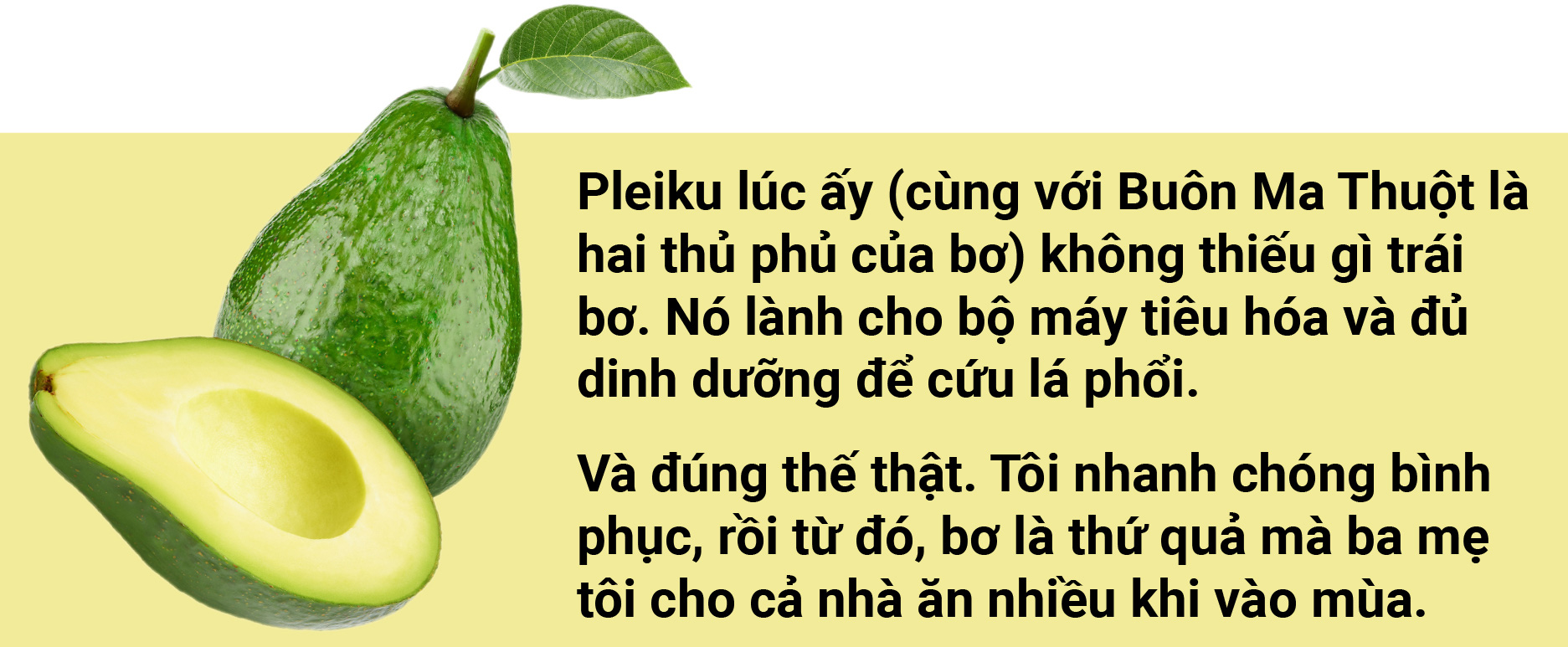 Vì thế, tôi oặt ẹo cả hàng tháng trời. May sao, ba tôi kể, có một vị bác sĩ đã "ra toa": Ôi, thằng nhỏ này còn hên. Đến mùa bơ rồi, giờ chỉ cho thằng nhỏ này ăn mỗi một thứ là trái bơ.