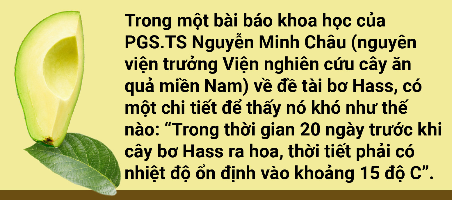Nói chung, cây bơ là giống đỏng đảnh, không riêng gì giống Booth và Hass. Như ở Đắk Mil (Đắk Nông) có giống bơ sáp rất ngon, nhưng mang về trồng ở Gia Lai thì lại chẳng ra gì" - ông nói.