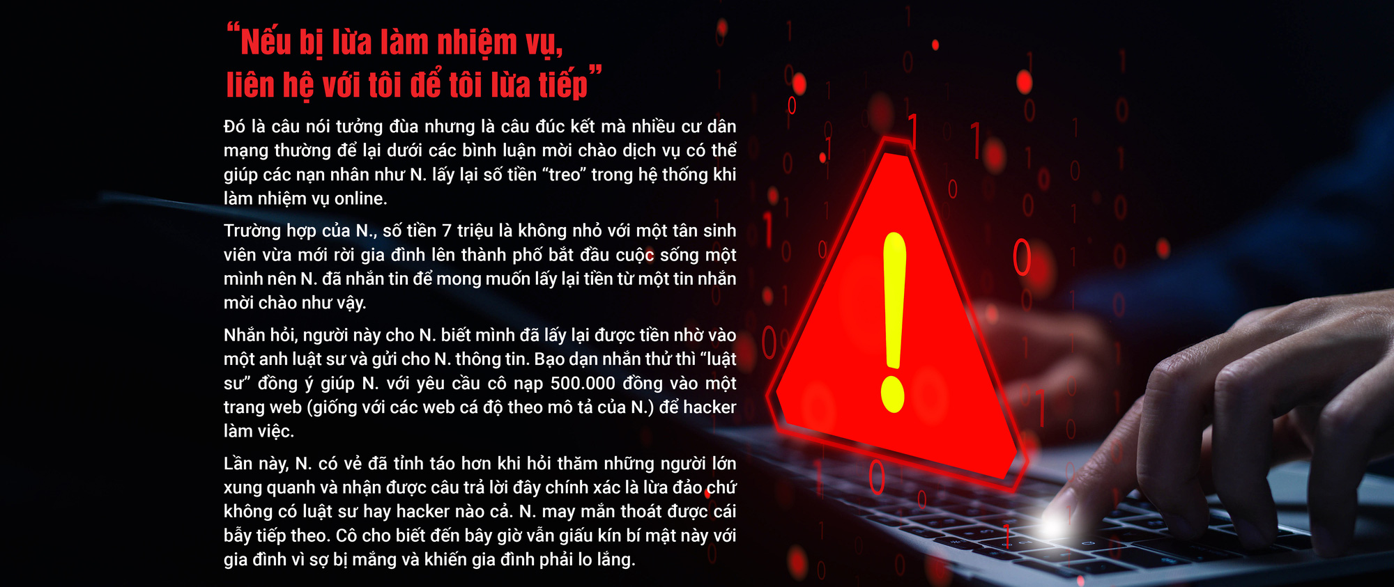 Sau những lần cảm thấy bất an với những yêu cầu vô lý, nhiều lần chuyển tiền và không thể rút lại, N. nhận ra mình đã rơi vào bẫy lừa đảo, mất hơn 7 triệu đồng.