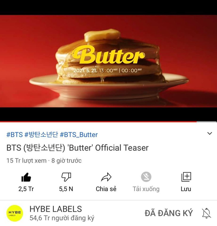 Trở lại với thành tích “khủng” của teaser MV Butter, thì sự trở lại lần này của BTS khiến cộng đồng Army trên thế giới vô cùng phấn khích, bằng chứng là chỉ trong thời gian ngắn teaser MV Butter đã ghi cho mình những thành tích khiến không ít người phải trầm trồ.