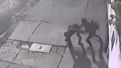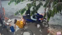 Tên cướp đánh vật với chiếc xe máy, ngã sấp ngửa trên vỉa hè sau khi giật đồ của cô gái bất thành.